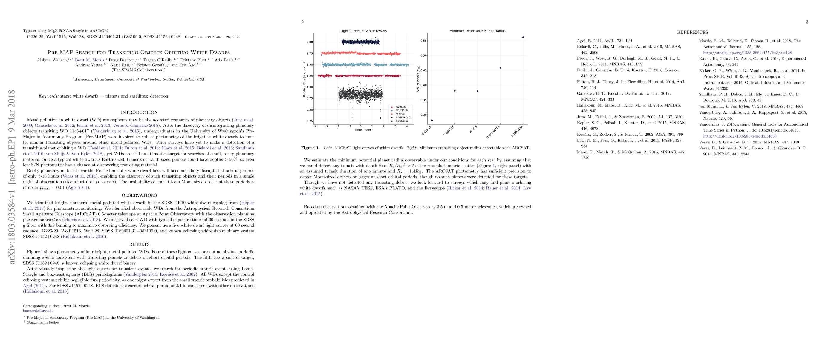 Metal pollution in white dwarf atmospheres may be the accreted remnants of planetary objects. After the discovery of disintegrating planetary objects transiting WD 1145+017 (Vanderburg et al. 2015), undergraduates in the University of Washington's Pre- Major in Astronomy Program (Pre-MAP) were inspired to collect photometry of the brightest white dwarfs to hunt for similar transiting objects around other metal-polluted white dwarfs. Prior surveys have yet to make a detection of a transiting planet orbiting a white dwarf, yet white dwarfs are still an attractive target for searches of small, rocky planetary material. Since a typical white dwarf is Earth-sized, transits of Earth-sized planets could have depths >50%, so even low S/N photometry has a chance at discovering transiting material. We identified bright, northern, metal-polluted white dwarfs in the SDSS DR10 white dwarf catalog, and observed five targets with the Astrophysical Research Consortium Small Aperture Telescope (ARCSAT) 0.5-meter telescope at Apache Point Observatory. The ARCSAT photometry had sufficient precision to detect Moon-sized objects or larger at short orbital periods, though no such planets were detected for these targets. We look forward to surveys which may find planets orbiting white dwarfs, such as NASA's TESS, ESA's PLATO, and the Evryscope.