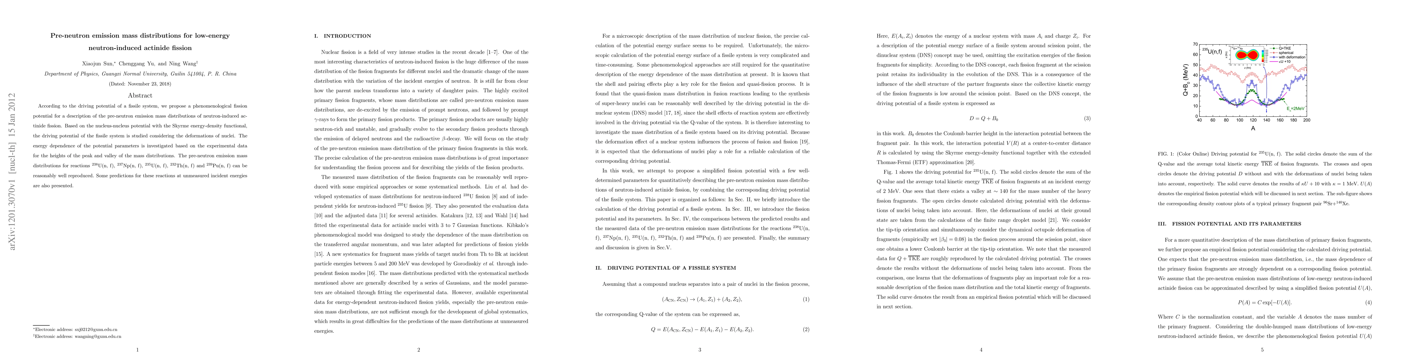 This paper proposes a phenomenological fission potential to describe pre-neutron emission mass distributions in low-energy neutron-induced actinide fission, based on the nucleus-nucleus potential and Skyrme energy-density functional. The model reasonably reproduces experimental data for several actinide fission reactions and provides predictions for unmeasured incident energies.
