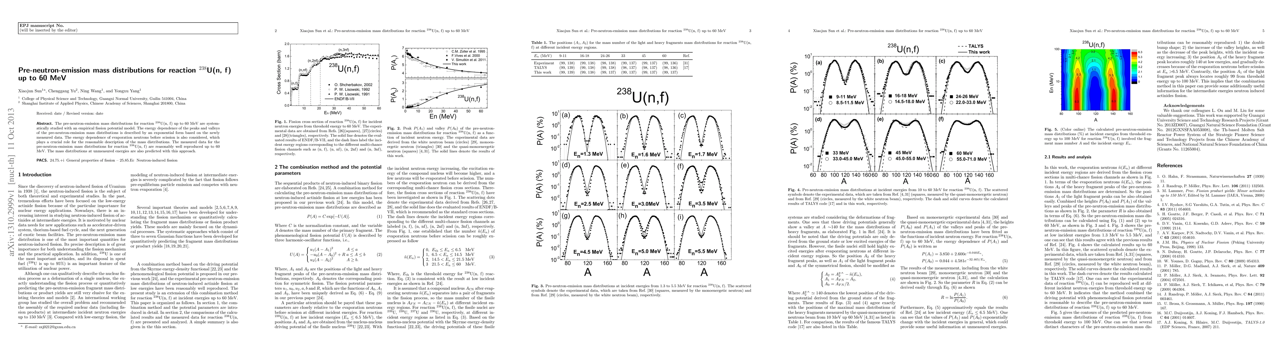 The pre-neutron-emission mass distributions for reaction $^{238}$U(n, f) up to 60 MeV are systematically studied with an empirical fission potential model. The energy dependence of the peaks and valleys of the pre-neutron-emission mass distributions is described by an exponential form based on the newly measured data. The energy dependence of evaporation neutrons before scission is also considered, which plays a crucial role for the reasonable description of the mass distributions. The measured data for the pre-neutron-emission mass distributions for reaction $^{238}$U(n, f) are reasonably well reproduced up to 60 MeV. The mass distributions at unmeasured energies are also predicted with this approach.