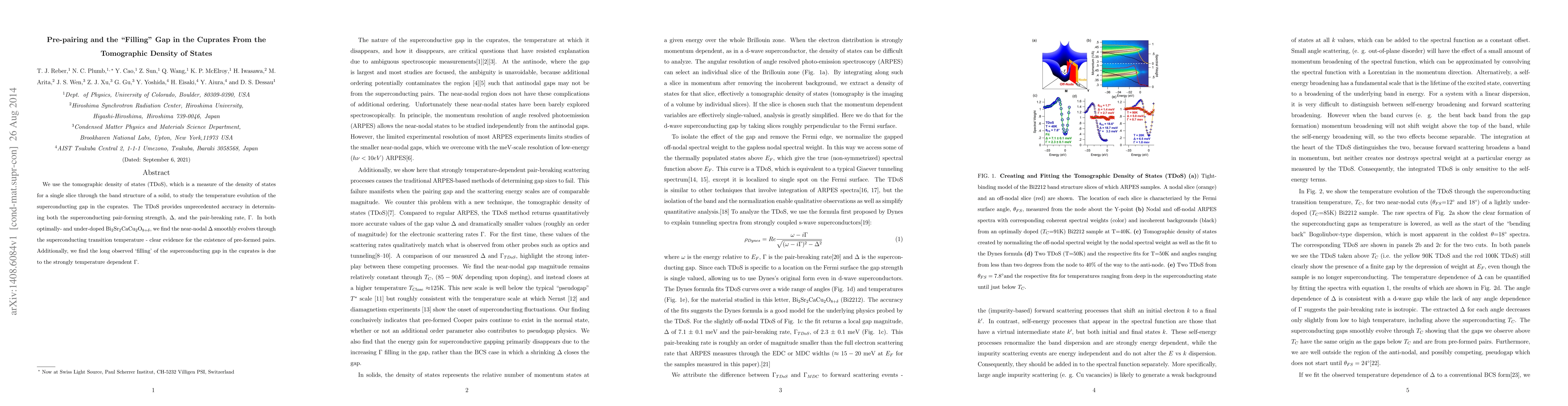 The paper uses a new method called tomographic density of states to study superconductivity in cuprates, finding that pre-formed pairs exist and the superconducting gap 'fills' with temperature-dependent pair-breaking rate.