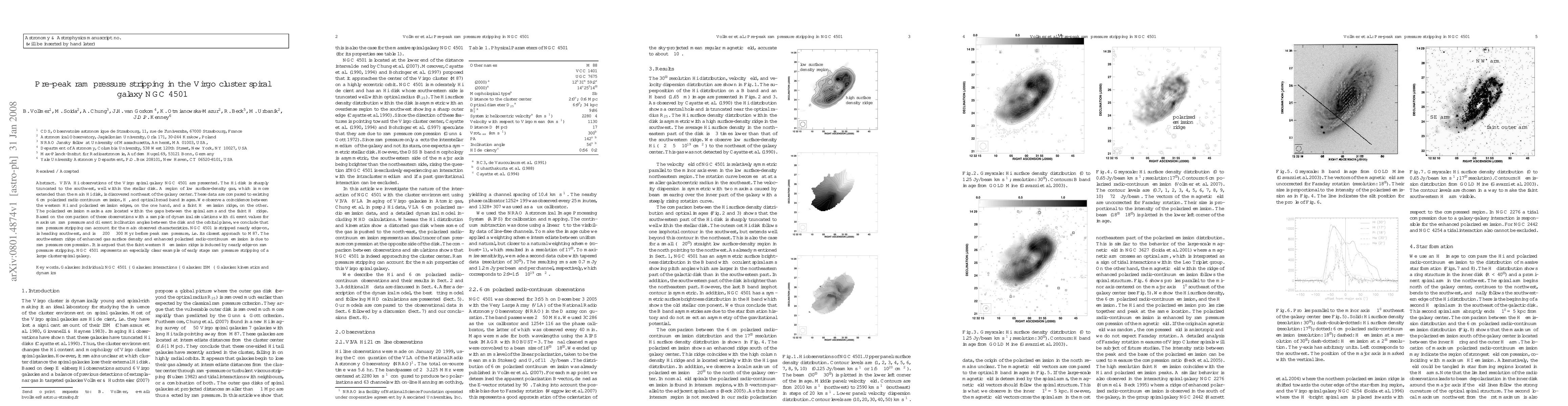This study uses VIVA HI observations to analyze the Virgo cluster spiral galaxy NGC 4501, revealing sharp truncation of its HI disk and an extended low-density gas region northeast of the galaxy. The findings suggest that pre-peak ram pressure stripping by M87 is responsible for these features, with the galaxy approaching its closest approach to M87 in ~200-300 Myr.