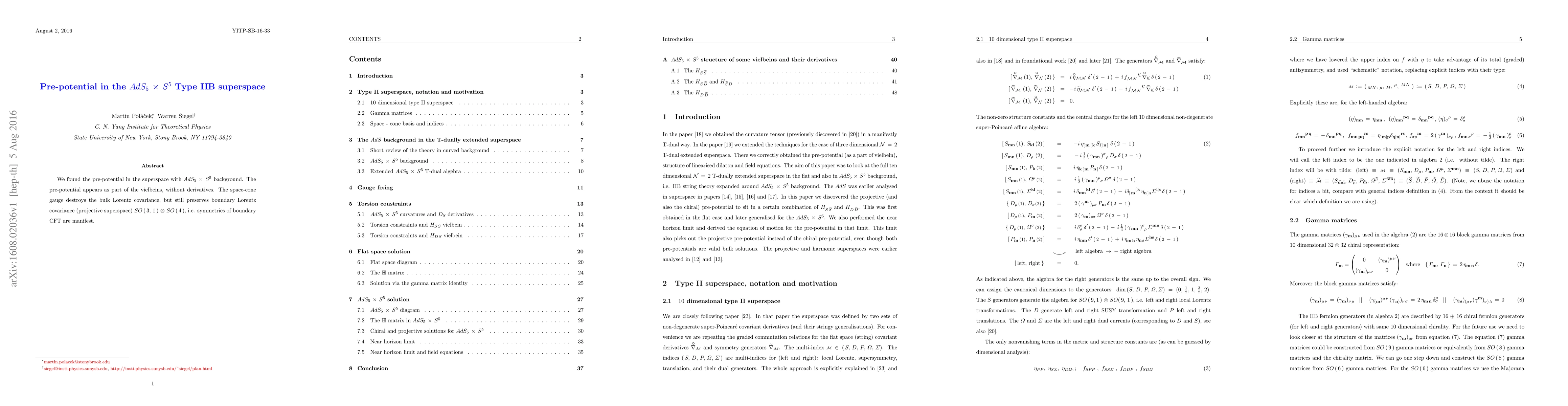 Summary: The research identifies the pre-potential in the $AdS_{5}\,\times\,S^{5}$ Type IIB superspace, revealing it as part of the vielbeins without derivatives. The space-cone gauge maintains boundary Lorentz covariance, preserving the symmetries of the boundary conformal field theory.