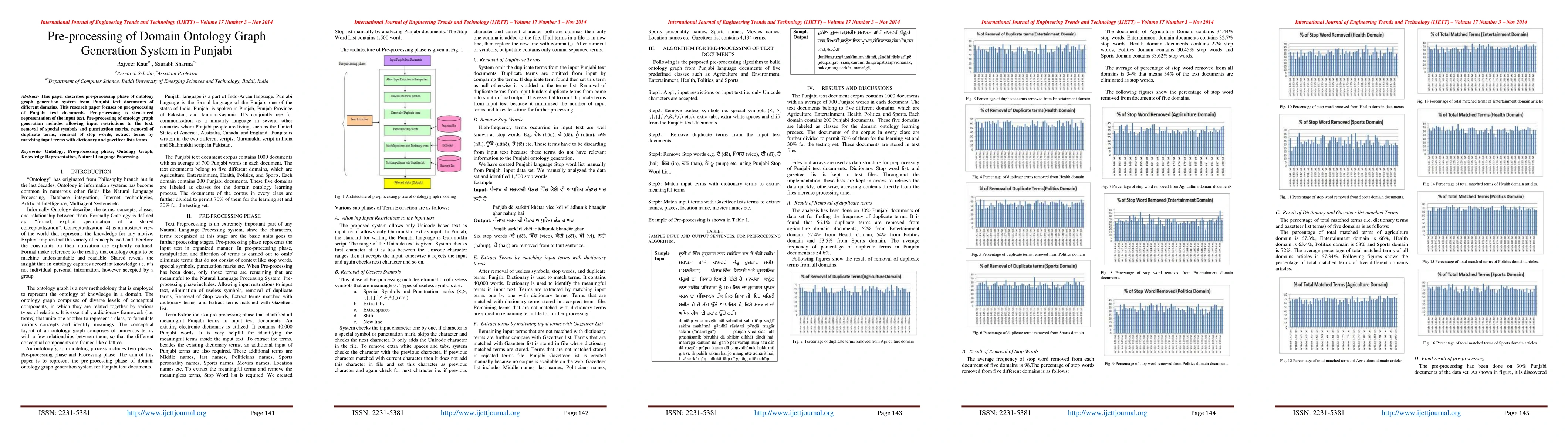 The research paper describes a pre-processing phase of ontology graph generation system from Punjabi text documents of different domains.