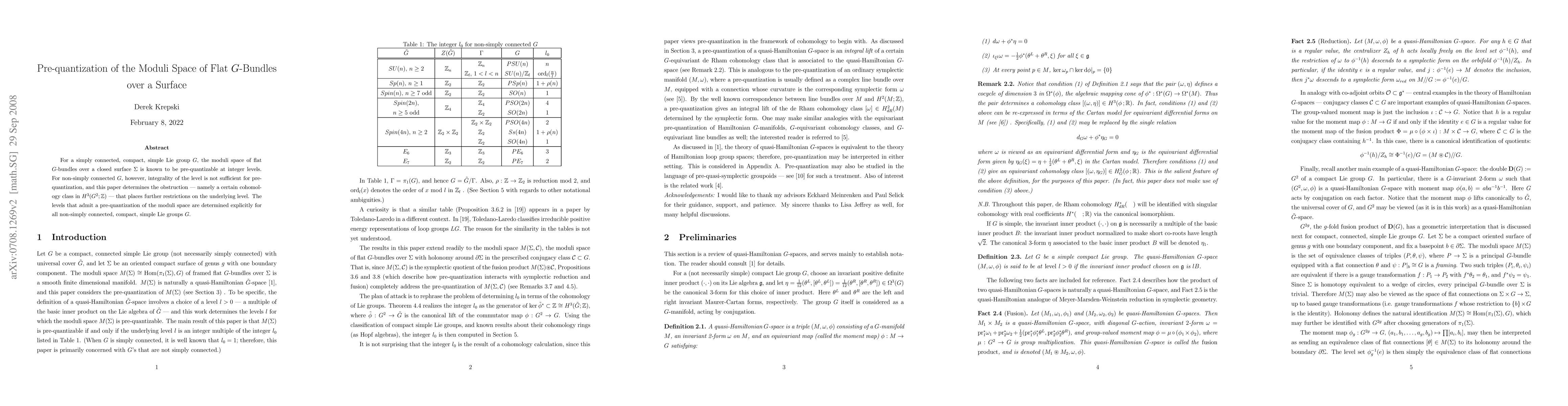 This paper identifies the obstruction for pre-quantization of the moduli space of flat G-bundles over a closed surface when G is not simply connected, determining that it depends on a specific cohomology class in H^3(G^2;Z). It explicitly determines the levels that allow pre-quantization for all non-simply connected, compact, simple Lie groups G.