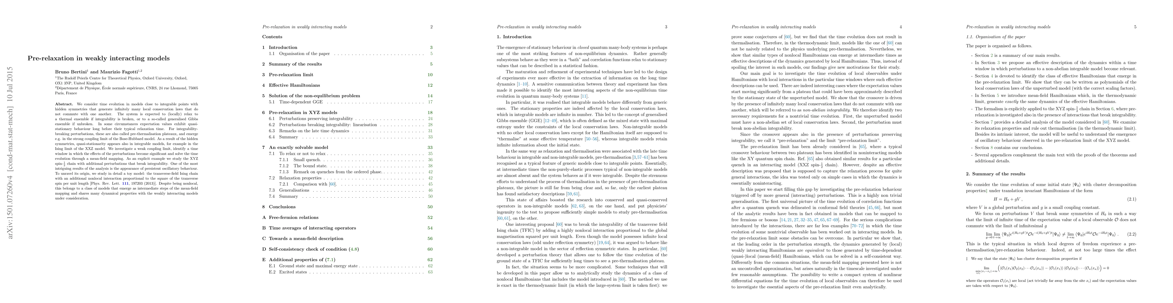 This paper explores the time evolution in weakly interacting models near integrable points, focusing on quasi-stationary behaviour before full relaxation. It identifies a time window where perturbations significantly affect the system dynamics, revealing persistent oscillatory behaviour in the XYZ spin-$\frac{1}{2}$ chain, and uses a toy model to further investigate its origin.