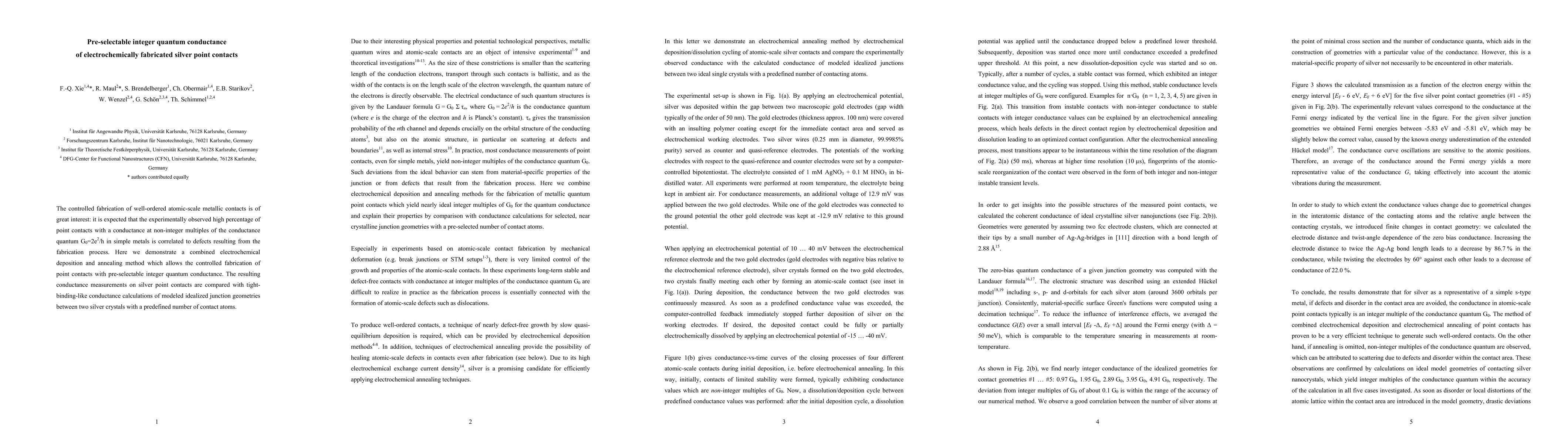 This research presents a method for fabricating silver point contacts with pre-selectable integer quantum conductance through electrochemical deposition and annealing. The study correlates the observed conductance values to idealized junction geometries and supports findings with tight-binding-like conductance calculations.