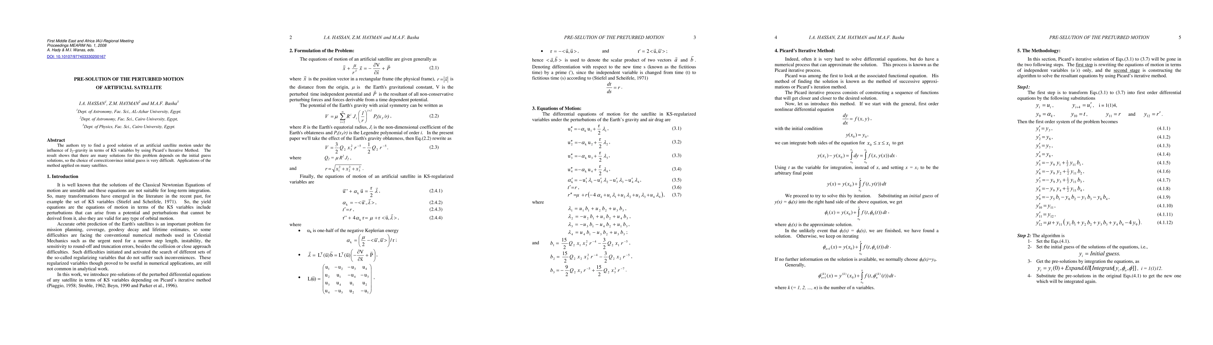 The authors try to find a good solution of an artificial satellite motion under the influence of J2 gravity in terms of KS variables by using Picard Iterative Method. The result shows that there are many solutions for this problem depends on the initial guess solutions, so the choice of correct and convince initial guess is very difficult. Applications of the method applied on many satellites.