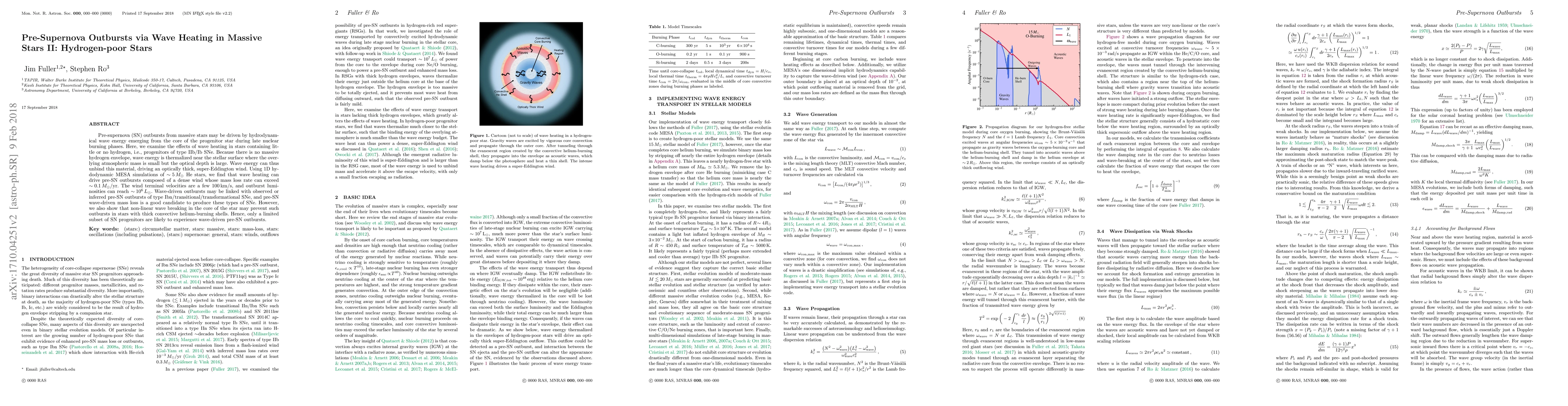 This paper investigates pre-supernova outbursts in hydrogen-poor massive stars, finding that wave heating can drive dense, super-Eddington winds with high mass loss rates and luminosities. However, non-linear wave breaking in stars with thick helium-burning shells may prevent such outbursts, limiting their occurrence in certain progenitors.