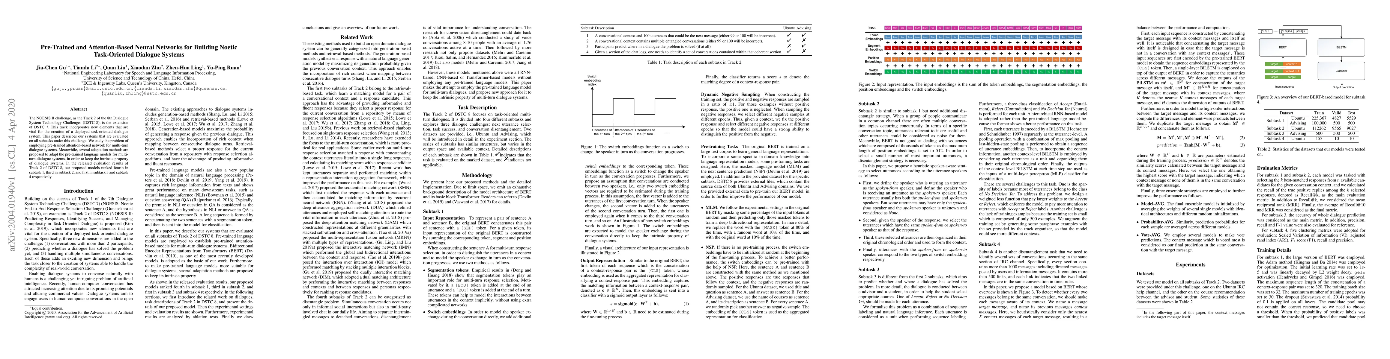 The NOESIS II challenge, as the Track 2 of the 8th Dialogue System Technology Challenges (DSTC 8), is the extension of DSTC 7. This track incorporates new elements that are vital for the creation of a deployed task-oriented dialogue system. This paper describes our systems that are evaluated on all subtasks under this challenge. We study the problem of employing pre-trained attention-based network for multi-turn dialogue systems. Meanwhile, several adaptation methods are proposed to adapt the pre-trained language models for multi-turn dialogue systems, in order to keep the intrinsic property of dialogue systems. In the released evaluation results of Track 2 of DSTC 8, our proposed models ranked fourth in subtask 1, third in subtask 2, and first in subtask 3 and subtask 4 respectively.
