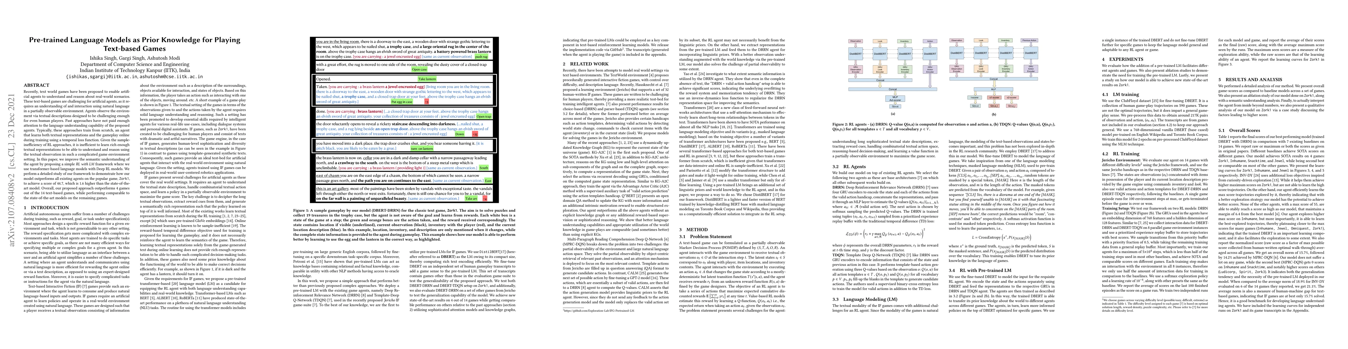 This paper proposes using pre-trained transformer-based language models as prior knowledge to enhance the performance of reinforcement learning agents in text-based games, achieving better semantic understanding and outperforming existing models on popular games like Zork1. The approach demonstrates improved performance across several text-based games, highlighting the benefits of leveraging language models in complex natural language environments.