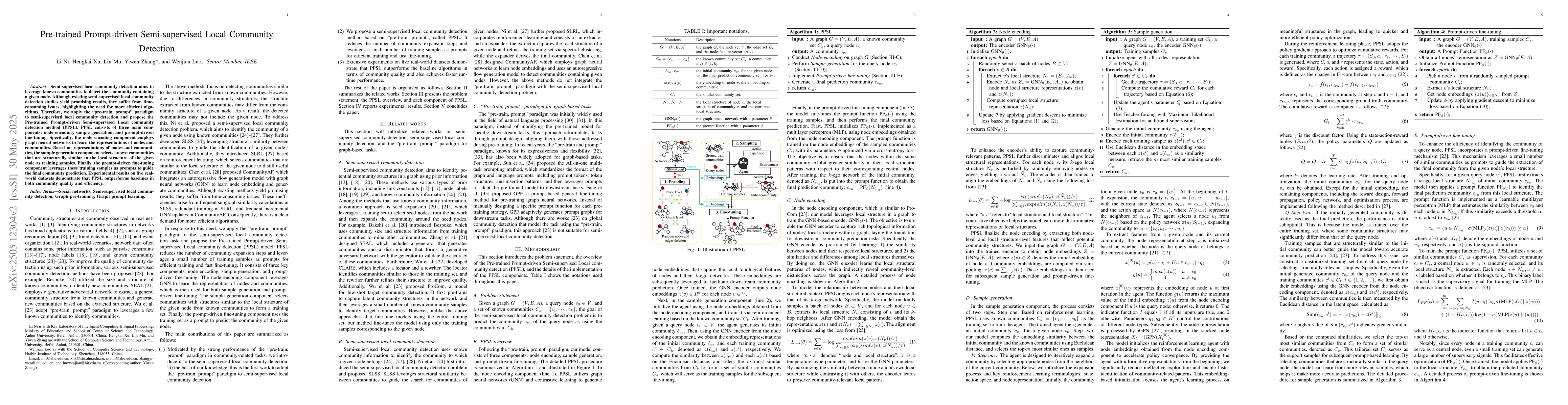 The research proposes PPCS, a model for pre-trained prompt-driven community search, utilizing graph neural networks for node encoding, sample generation based on structural similarity, and prompt-driven fine-tuning for community prediction.