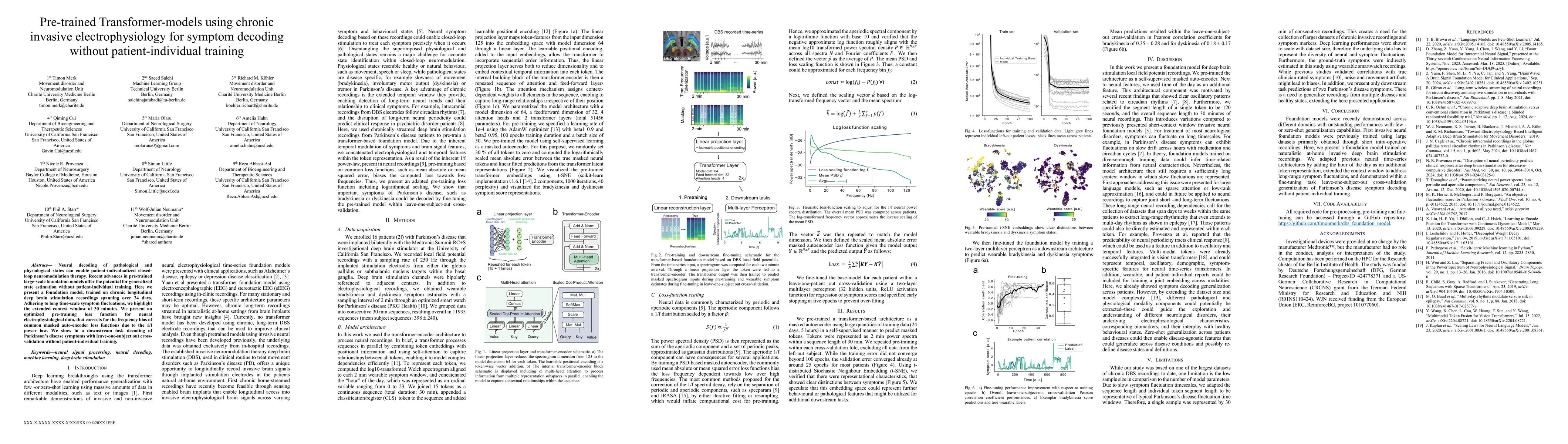 Neural decoding of pathological and physiological states can enable patient-individualized closed-loop neuromodulation therapy. Recent advances in pre-trained large-scale foundation models offer the potential for generalized state estimation without patient-individual training. Here we present a foundation model trained on chronic longitudinal deep brain stimulation recordings spanning over 24 days. Adhering to long time-scale symptom fluctuations, we highlight the extended context window of 30 minutes. We present an optimized pre-training loss function for neural electrophysiological data that corrects for the frequency bias of common masked auto-encoder loss functions due to the 1-over-f power law. We show in a downstream task the decoding of Parkinson's disease symptoms with leave-one-subject-out cross-validation without patient-individual training.