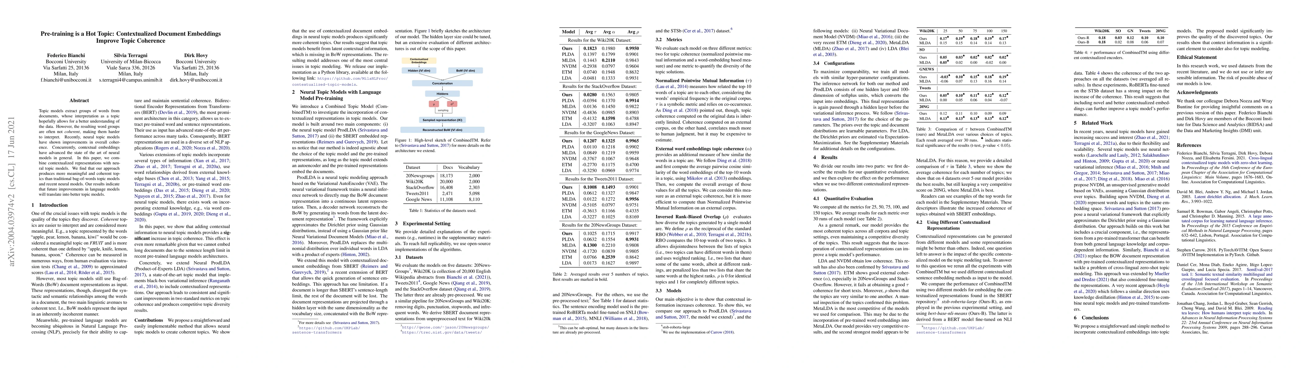 This paper combines contextualized document embeddings with neural topic models to enhance topic coherence, finding that the approach produces more coherent and interpretable topics compared to traditional and recent neural models. The results suggest that future advancements in language models will further improve topic modeling.