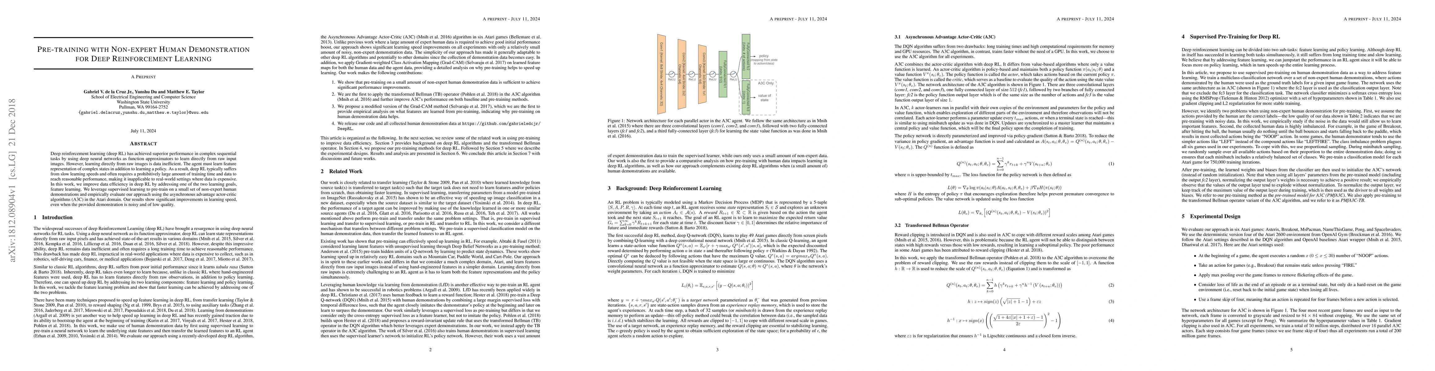 This paper proposes a method to enhance data efficiency in deep reinforcement learning by pre-training neural networks using non-expert human demonstrations. The approach significantly improves learning speed and performance in the Atari domain, even with noisy and low-quality demonstrations.