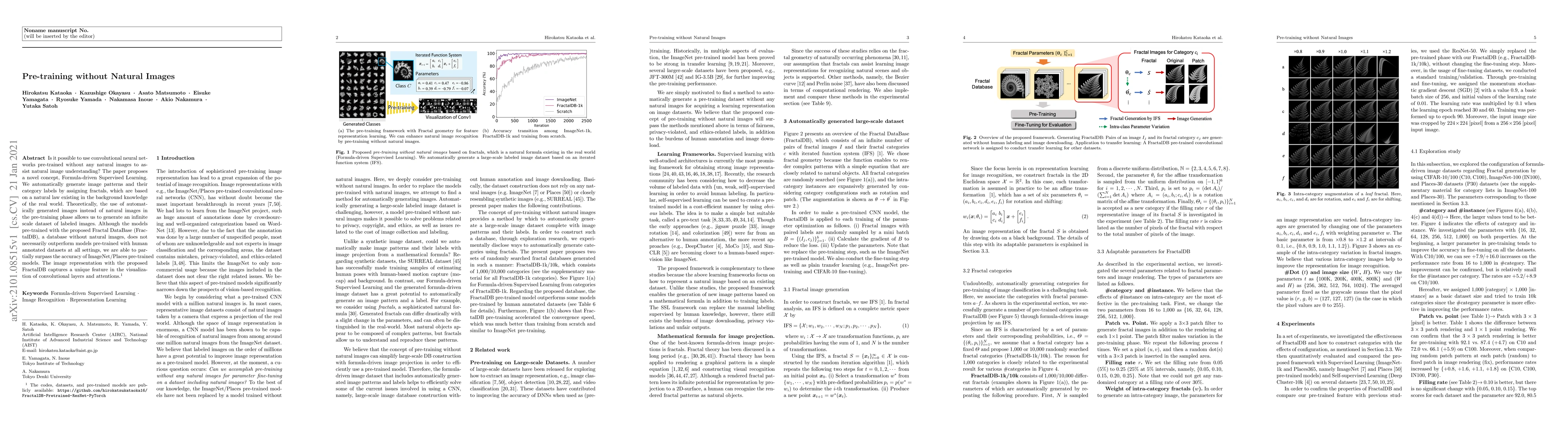 Researchers propose a new method to pre-train convolutional neural networks using fractals and generated images, achieving partial surpassance of ImageNet/Places models in image understanding.