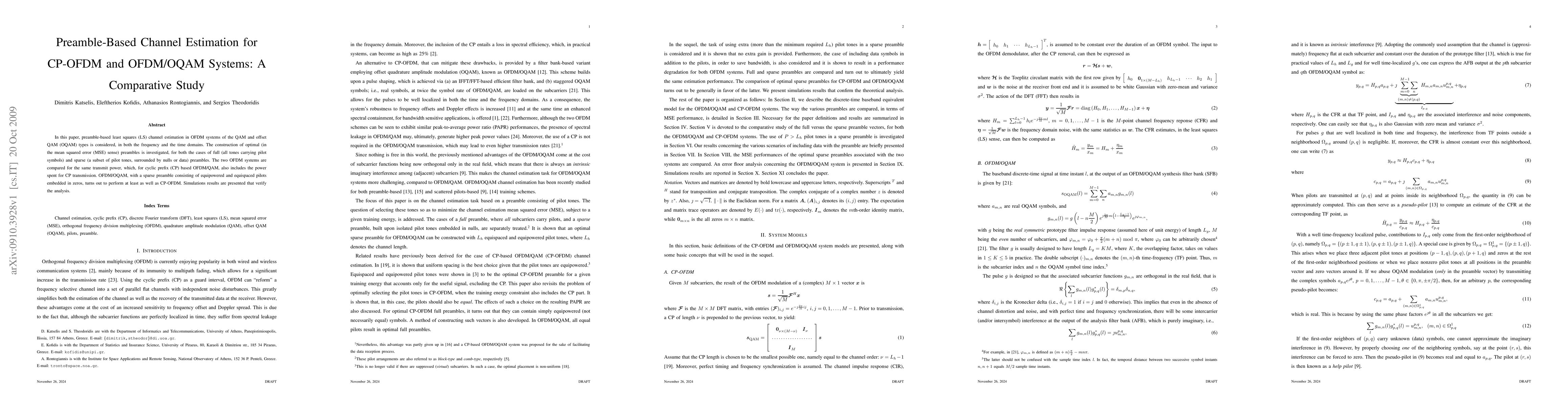 This paper investigates preamble-based least squares channel estimation for both CP-OFDM and OFDM/OQAM systems, comparing their performance for full and sparse preambles. OFDM/OQAM with sparse equipowered pilots shows comparable or better performance than CP-OFDM, verified through simulations.