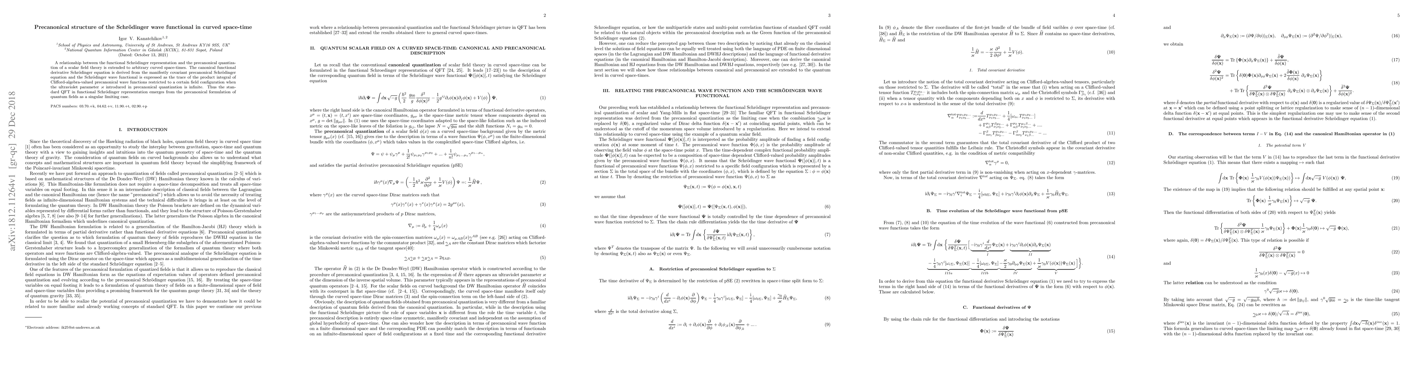 This paper extends the functional Schrödinger representation to curved space-time, deriving the canonical functional derivative Schrödinger equation from a covariant precanonical Schrödinger equation. The Schrödinger wave functional is shown to emerge from the trace of a product integral of precanonical wave functions, revealing standard QFT as a singular limit in precanonical quantization.