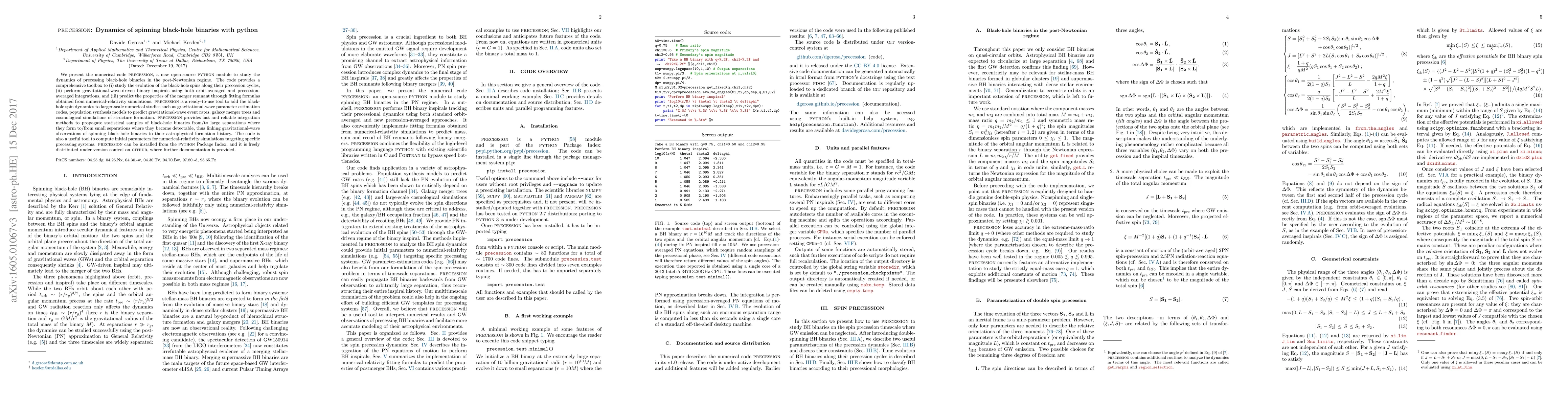 PRECESSION is an open-source Python module designed to study the dynamics of precessing black-hole binaries in the post-Newtonian regime, offering tools for gravitational-wave driven inspirals and merger remnant predictions. It facilitates linking gravitational-wave observations to astrophysical formation histories.