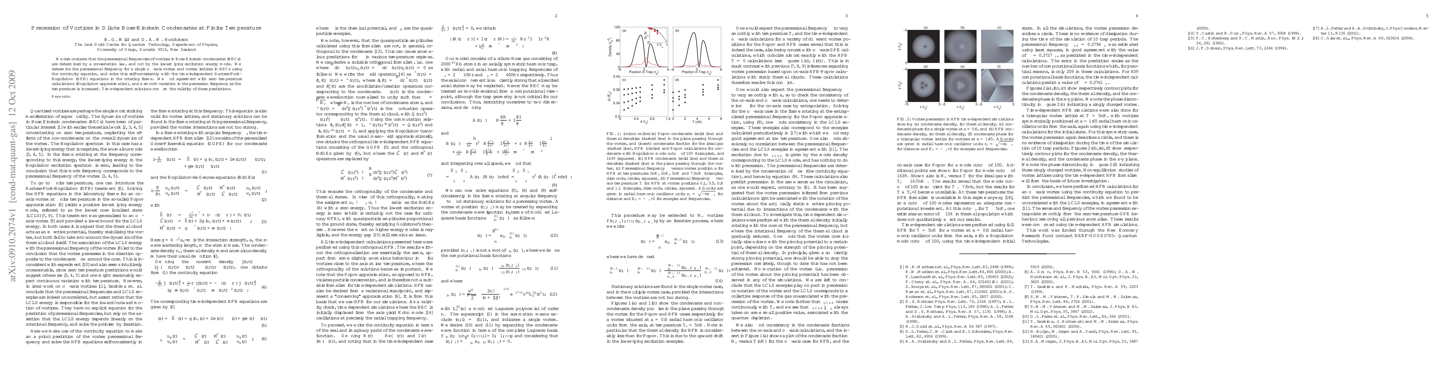 This paper demonstrates that the precessional frequency of vortices in dilute Bose-Einstein condensates is governed by a conservation law rather than the lowest excitation energy mode, and it provides a self-consistent solution for single and lattice vortices using the time-independent Hartree-Fock-Bogoliubov equations, showing smooth frequency variation with temperature increase.