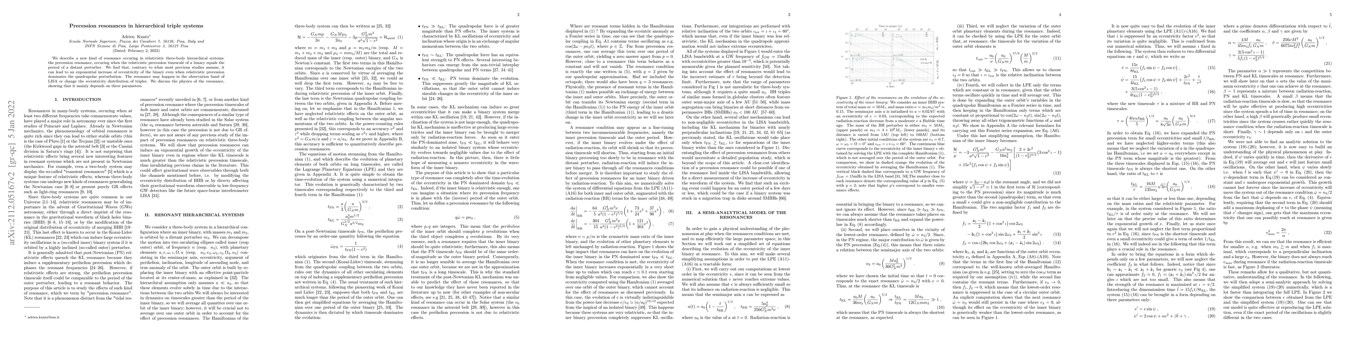 The paper presents a detailed analysis of precession resonances in hierarchical triple systems, deriving conditions for their occurrence and examining their effects on binary eccentricity.