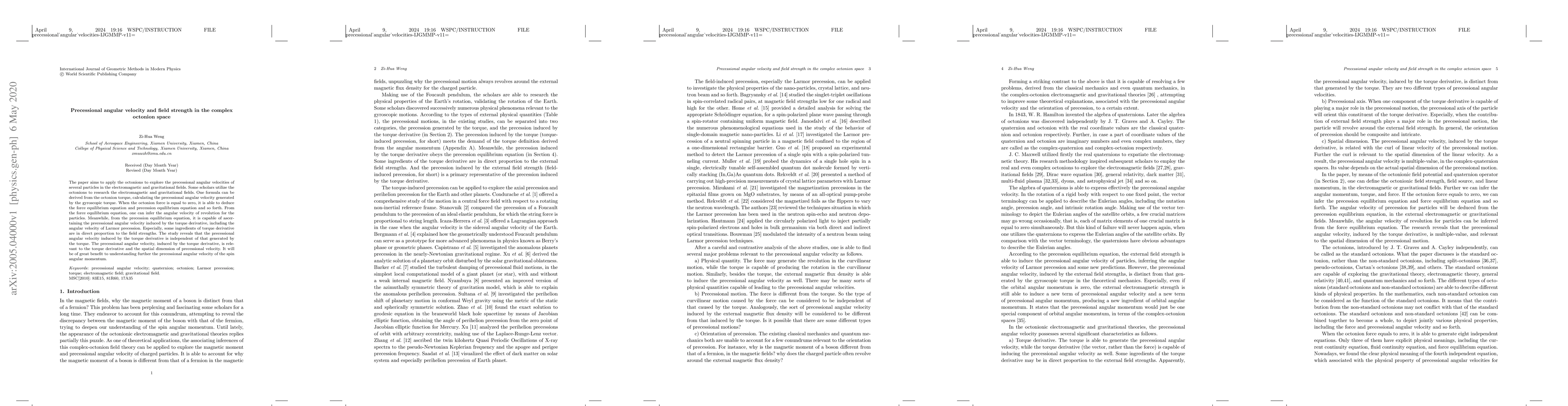 This paper explores the application of octonions to calculate precessional angular velocities in electromagnetic and gravitational fields, deriving a formula from octonion torque that determines precessional angular velocity. It finds that the precessional angular velocity from the torque derivative is independent of that from the torque itself and is influenced by field strengths and spatial dimensions.