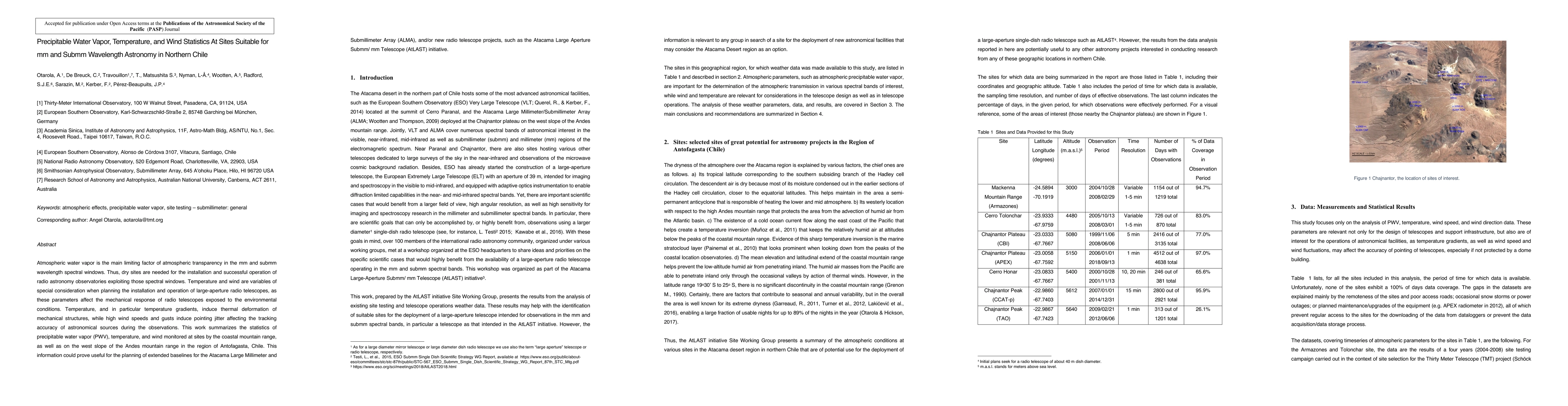 Atmospheric water vapor is the main limiting factor of atmospheric transparency in the mm and submm wavelength spectral windows. Thus, dry sites are needed for the installation and successful operation of radio astronomy observatories exploiting those spectral windows. Temperature and wind are variables of special consideration when planning the installation and operation of large-aperture radio telescopes, as these parameters affect the mechanical response of radio telescopes exposed to the environmental conditions. Temperature, and in particular temperature gradients, induce thermal deformation of mechanical structures, while high wind speeds and gusts induce pointing jitter affecting the tracking accuracy of astronomical sources during the observations. This work summarizes the statistics of precipitable water vapor (PWV), temperature, and wind monitored at sites by the coastal mountain range, as well as on the west slope of the Andes mountain range in the region of Antofagasta, Chile. This information could prove useful for the planning of extended baselines for the Atacama Large Millimeter and Submillimeter Array (ALMA), and/or new radio telescope projects, such as the Atacama Large Aperture Submm/ mm Telescope (AtLAST) initiative.