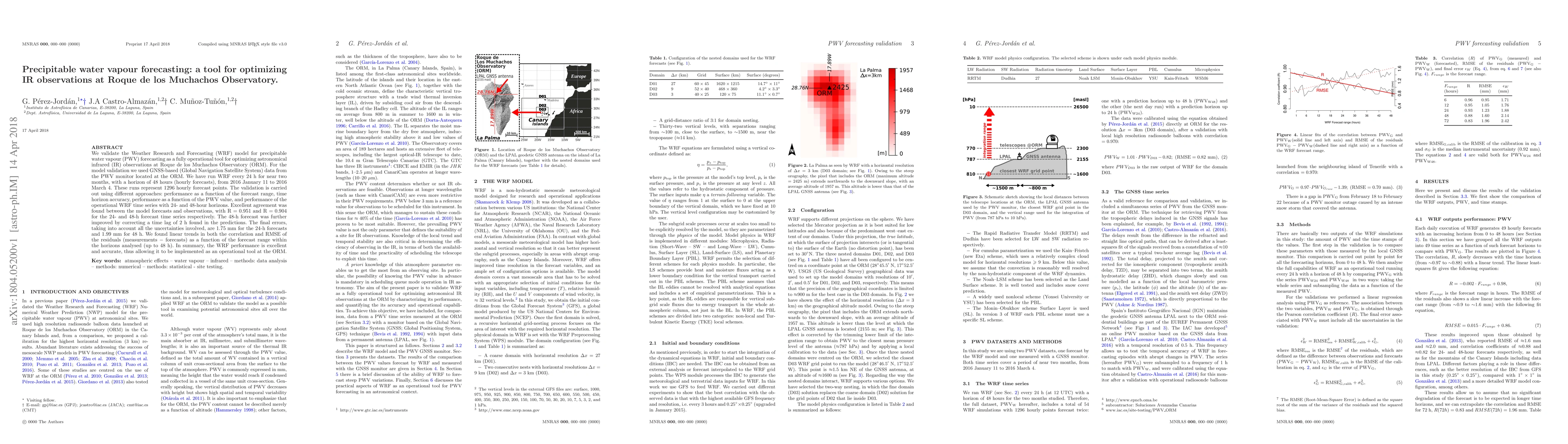 The Weather Research and Forecasting (WRF) model effectively forecasts precipitable water vapour (PWV) for optimizing infrared observations at Roque de los Muchachos Observatory, with high accuracy and low error (1.75 mm for 24 h and 1.99 mm for 48 h). The model's performance is validated against GNSS-based PWV monitor data, demonstrating its potential as an operational tool.