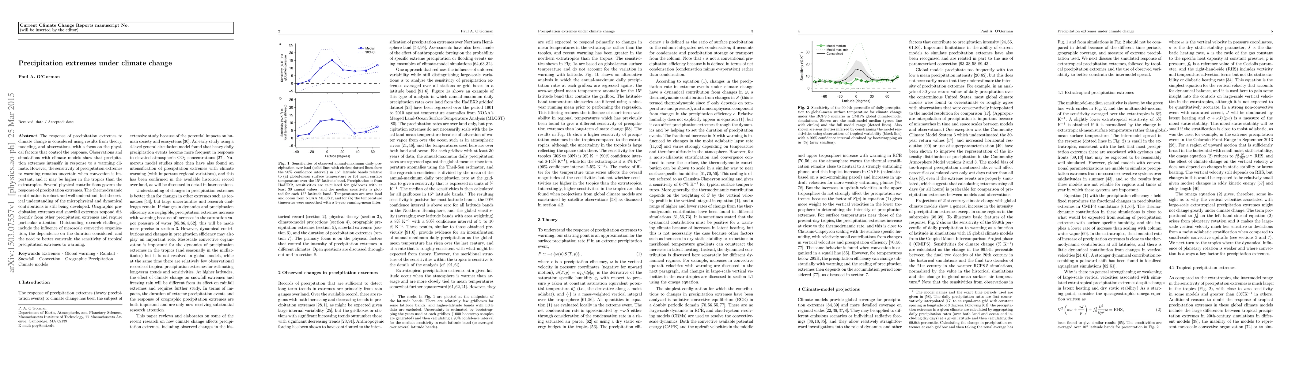 This paper explores how precipitation extremes intensify under climate change, highlighting robust thermodynamic contributions but noting uncertainties in microphysical and dynamical factors, especially in tropical regions. Key challenges include understanding mesoscale convective organization and the sensitivity of tropical precipitation extremes to warming.