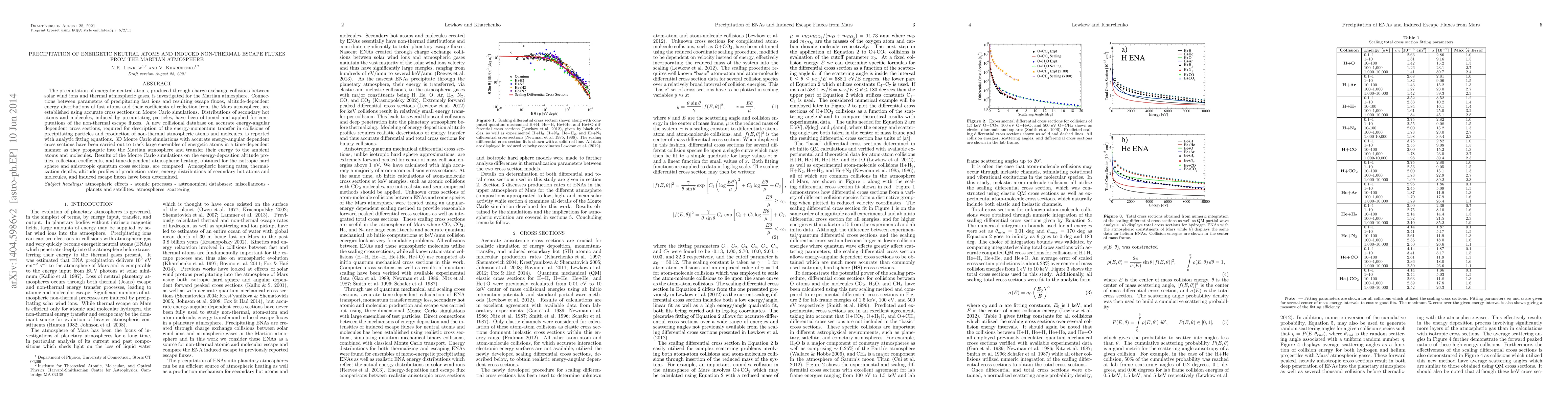 This paper investigates the precipitation of energetic neutral atoms in the Martian atmosphere, using Monte Carlo simulations to establish connections between fast ions and non-thermal escape fluxes, and reports a new collisional database for accurate energy-momentum transfer. The study determines atmospheric heating rates, energy distributions, and induced escape fluxes through detailed 3D simulations.