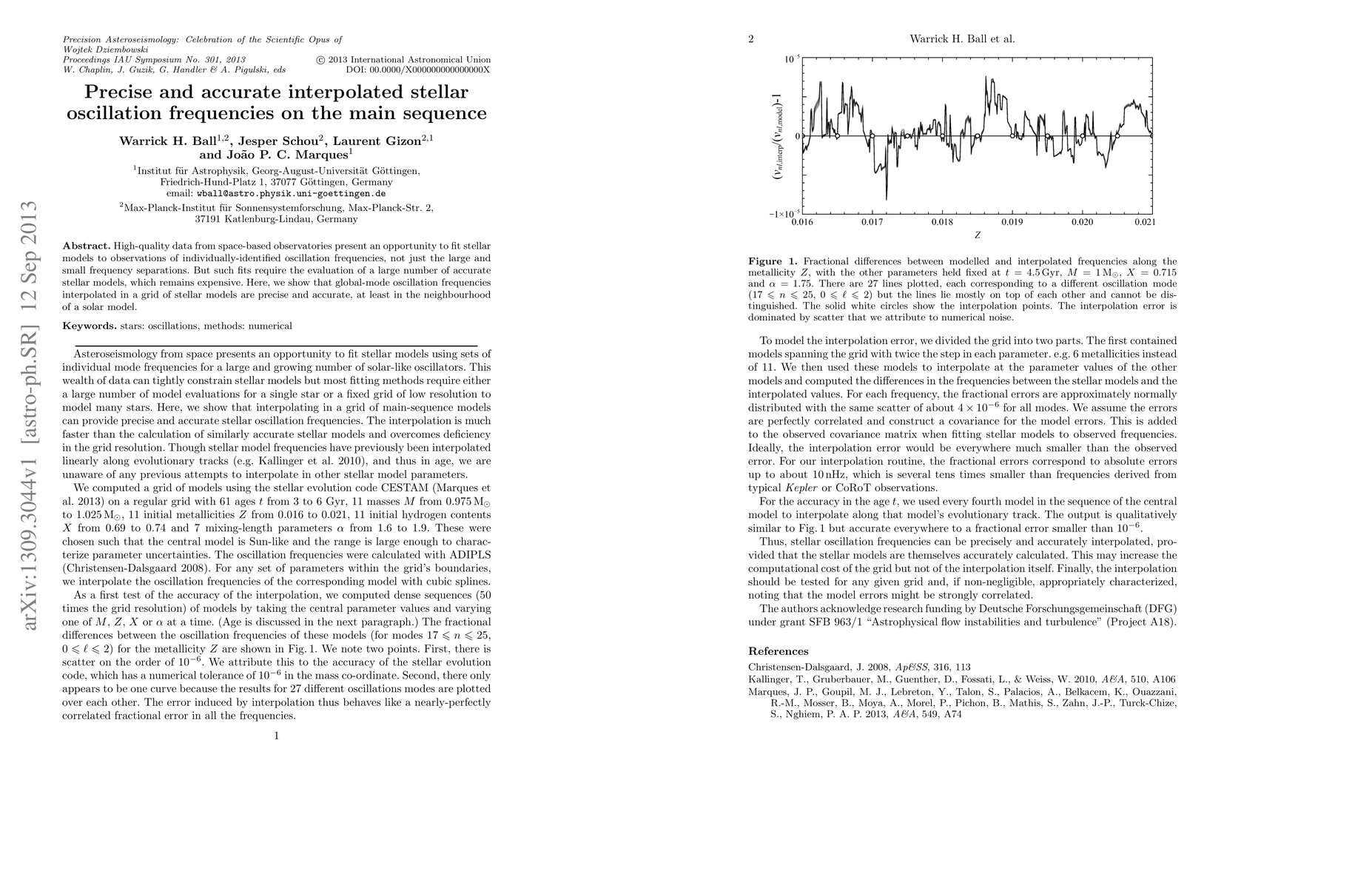 High-quality data from space-based observatories present an opportunity to fit stellar models to observations of individually-identified oscillation frequencies, not just the large and small frequency separations. But such fits require the evaluation of a large number of accurate stellar models, which remains expensive. Here, we show that global-mode oscillation frequencies interpolated in a grid of stellar models are precise and accurate, at least in the neighbourhood of a solar model.