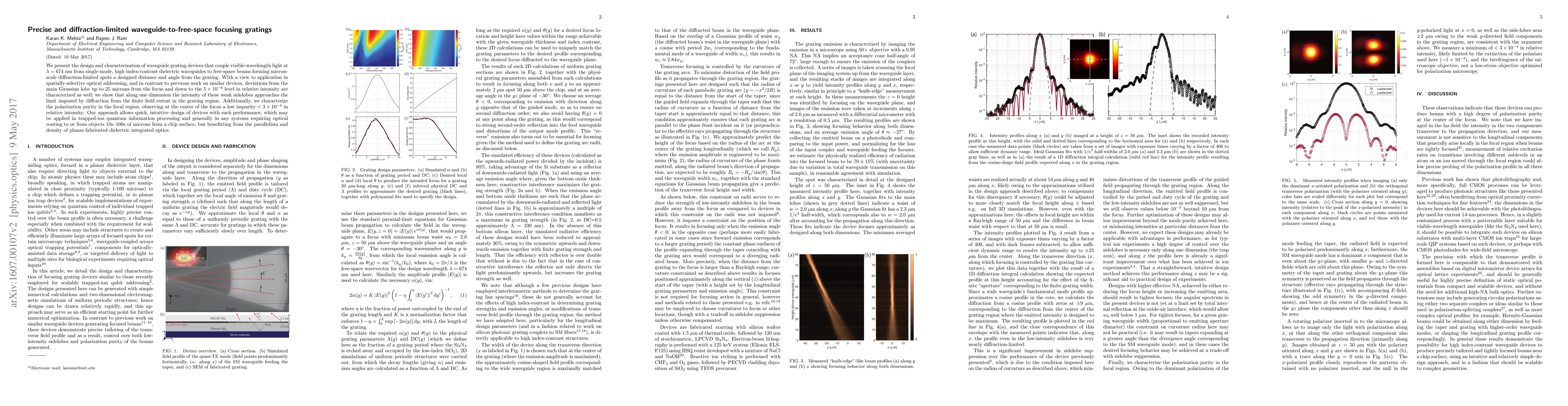 Researchers designed waveguide grating devices that can focus visible light into micron-scale spots with precise control over intensity and polarization purity. These devices have potential applications in quantum information processing and other fields requiring optical routing.