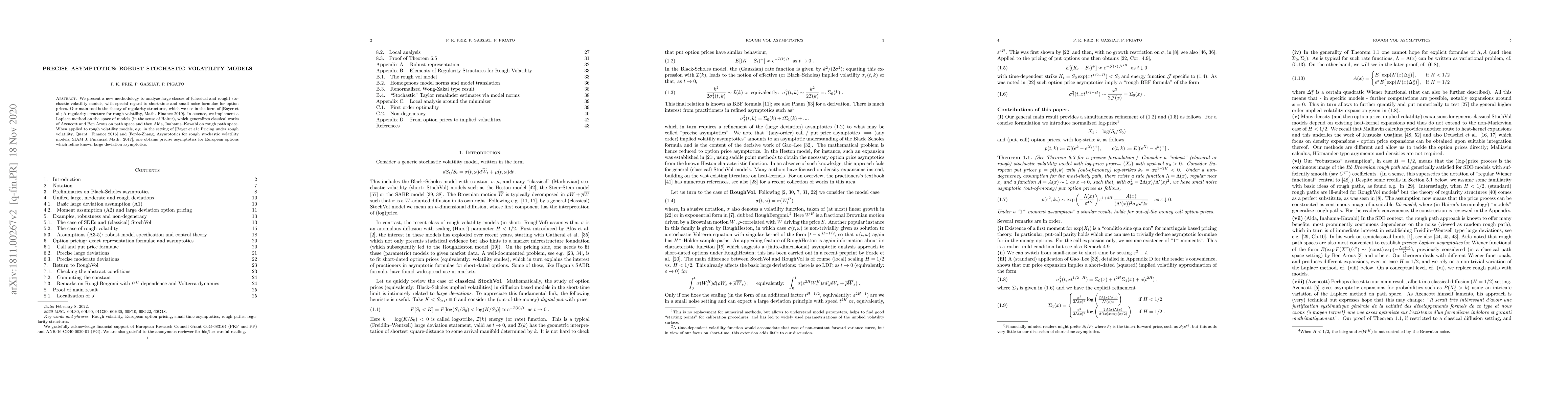 We present a new methodology to analyze large classes of (classical and rough) stochastic volatility models, with special regard to short-time and small noise formulae for option prices. Our main tool is the theory of regularity structures, which we use in the form of [Bayer et al; A regularity structure for rough volatility, 2017]. In essence, we implement a Laplace method on the space of models (in the sense of Hairer), which generalizes classical works of Azencott and Ben Arous on path space and then Aida, Inahama--Kawabi on rough path space. When applied to rough volatility models, e.g. in the setting of [Forde-Zhang, Asymptotics for rough stochastic volatility models, 2017], one obtains precise asymptotic for European options which refine known large deviation asymptotics.