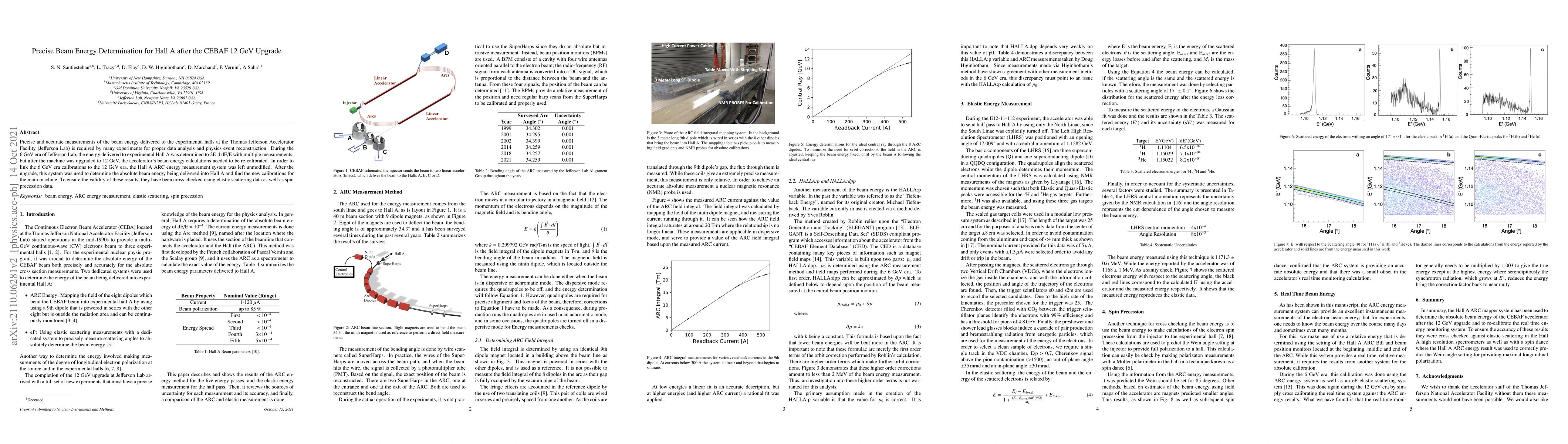 Precise and accurate measurements of the beam energy delivered to the experimental halls at the Thomas Jefferson Accelerator Facility (Jefferson Lab) is required by many experiments for proper data analysis and physics event reconstruction. During the 6 GeV era of Jefferson Lab, the energy delivered to experimental Hall A was determined to 2E-4 dE/E with multiple measurements; but after the machine was upgraded to 12 GeV, the accelerator's beam energy calculations needed to be re-calibrated. In order to link the 6 GeV era calibrations to the 12 GeV era, the Hall A ARC energy measurement system was left unmodified. After the upgrade, this system was used to determine the absolute beam energy being delivered into Hall A and find the new calibrations for the main machine. To ensure the validity of these results, they have been cross checked using elastic scattering data as well as spin precession data.