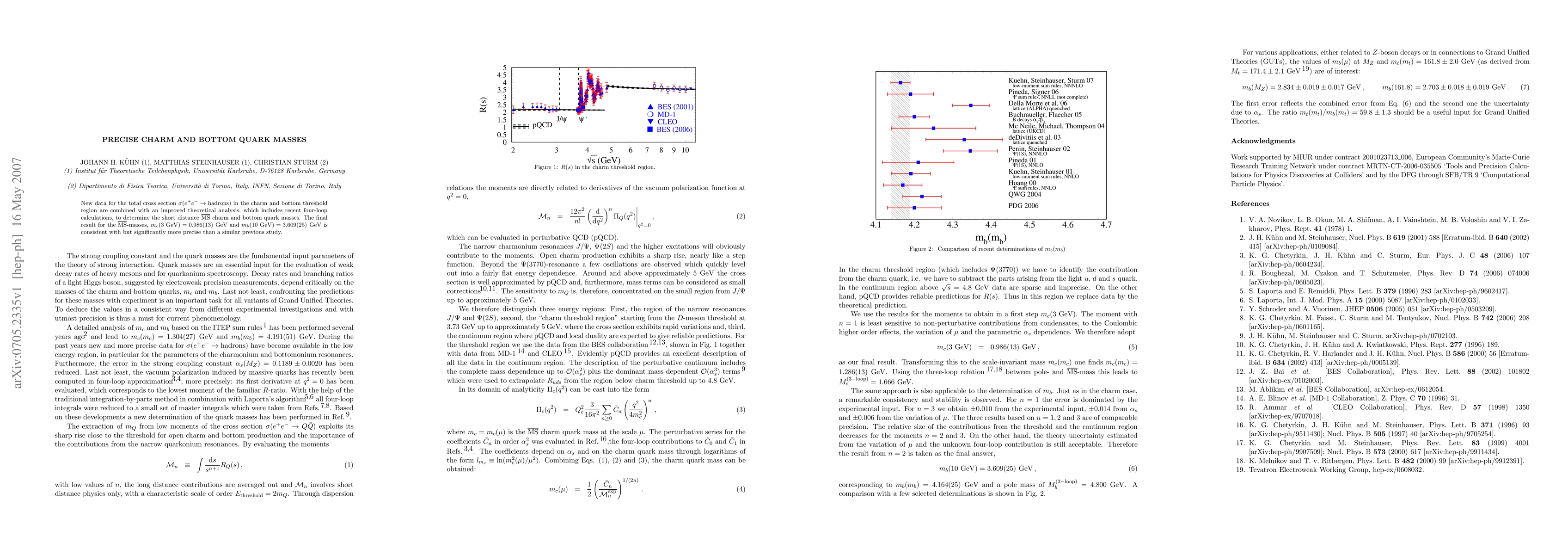 This research combines new experimental data with advanced theoretical calculations to determine the precise masses of charm and bottom quarks, yielding m_c(3 GeV) = 0.986(13) GeV and m_b(10 GeV) = 3.609(25) GeV, providing a significant improvement in precision over previous studies.