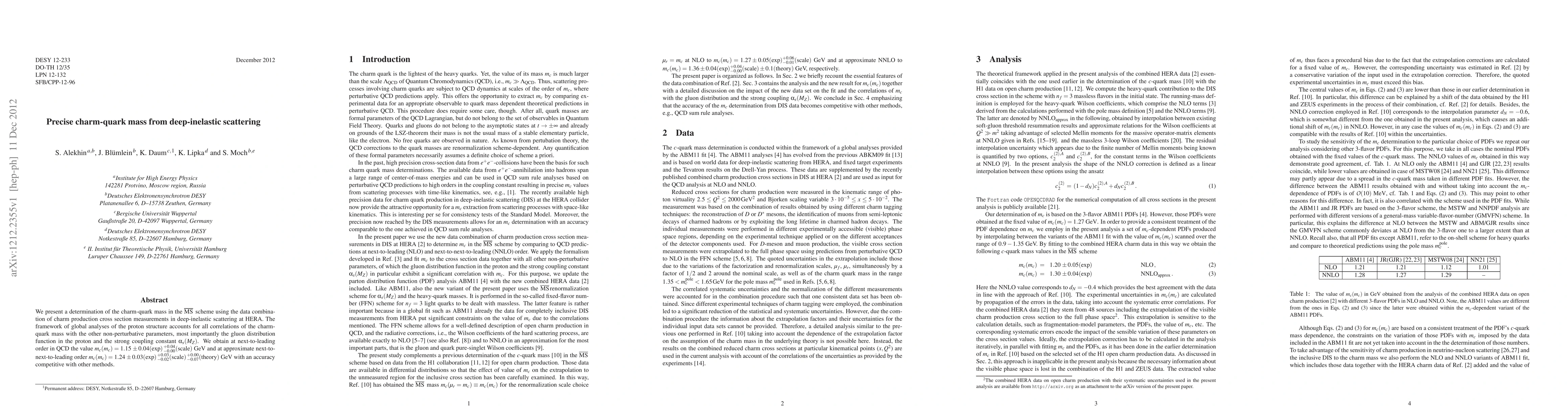 This paper determines the charm-quark mass using deep-inelastic scattering data from HERA, obtaining m_c(m_c) = 1.15 ± 0.04 GeV at next-to-leading order and m_c(m_c) = 1.24 ± 0.03 GeV at next-to-next-to-leading order, achieving competitive accuracy.