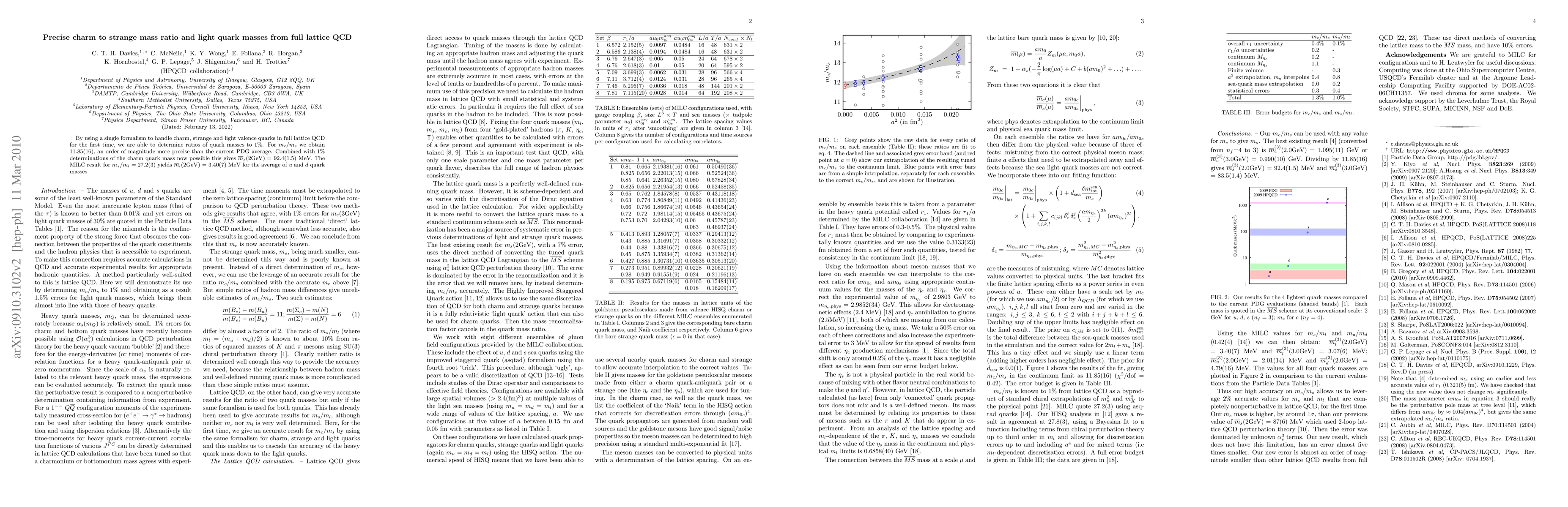 By using a single formalism to handle charm, strange and light valence quarks in full lattice QCD for the first time, we are able to determine ratios of quark masses to 1%. For $m_c/m_s$ we obtain 11.85(16), an order of magnitude more precise than the current PDG average. Combined with 1% determinations of the charm quark mass now possible this gives $\bar{m}_s(2{\rm GeV}) =$ 92.4(1.5) MeV. The MILC result for $m_s/m_l = 27.2(3) $ yields $\bar{m}_l(2{\rm GeV})$ = 3.40(7) MeV for the average of $u$ and $d$ quark masses.
