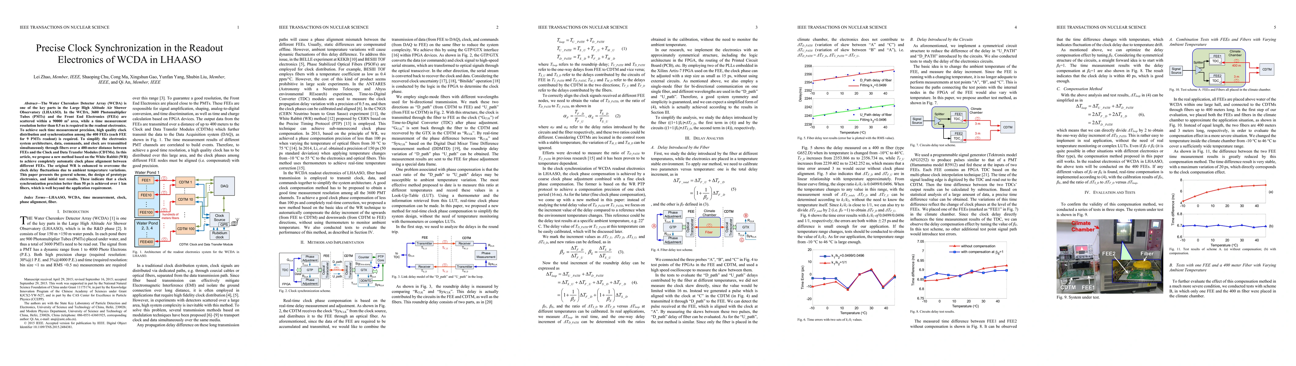 This paper proposes a new method based on the enhanced White Rabbit protocol to achieve precise automatic clock synchronization in the readout electronics of the Water Cherenkov Detector Array (WCDA) in LHAASO, achieving synchronization precision better than 50 ps over 1 km fibers, surpassing the required 0.5 ns time measurement resolution.