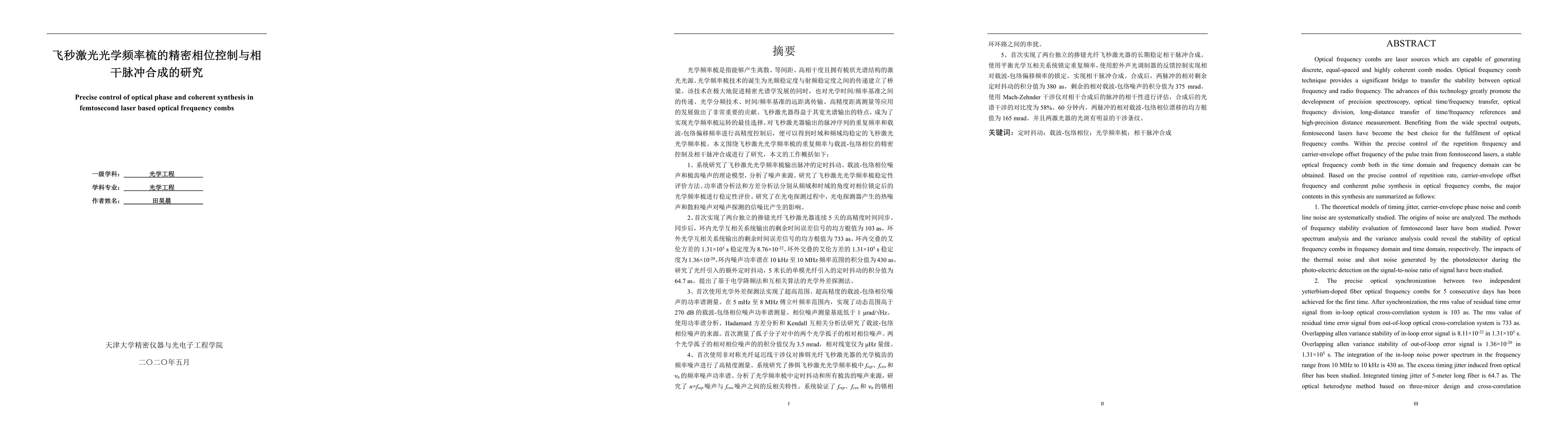 This research paper explores the precise control of optical phase and coherent synthesis in femtosecond laser-based optical frequency combs, demonstrating significant advancements in stability and coherence essential for applications in precision spectroscopy and high-precision measurements. The work focuses on controlling the repetition rate and carrier-envelope offset frequency to generate stable, coherent optical frequency combs.