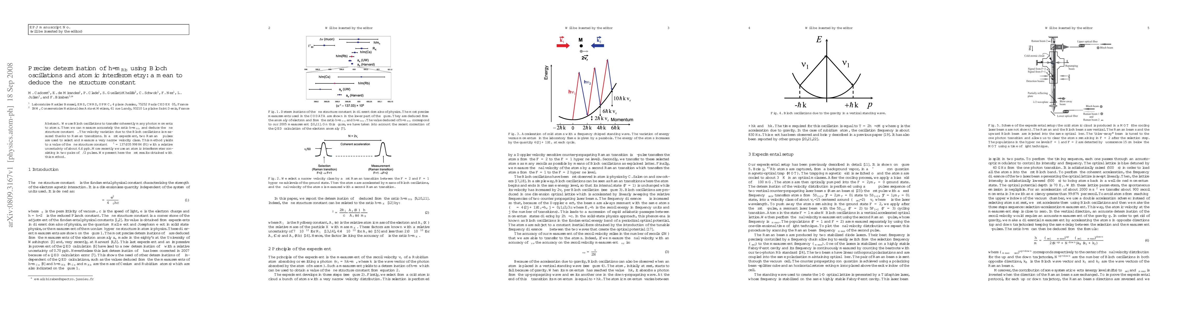 This research uses Bloch oscillations and atomic interferometry to precisely determine the ratio h/m_Rb, enabling the deduction of the fine structure constant. The method involves measuring velocity variations via Raman transitions, yielding a value of alpha^-1 = 137.035 998 84 (91) with a 6.6 ppb relative uncertainty. Recently, an atomic interferometer with pi/2 pulses was employed, providing initial promising results.