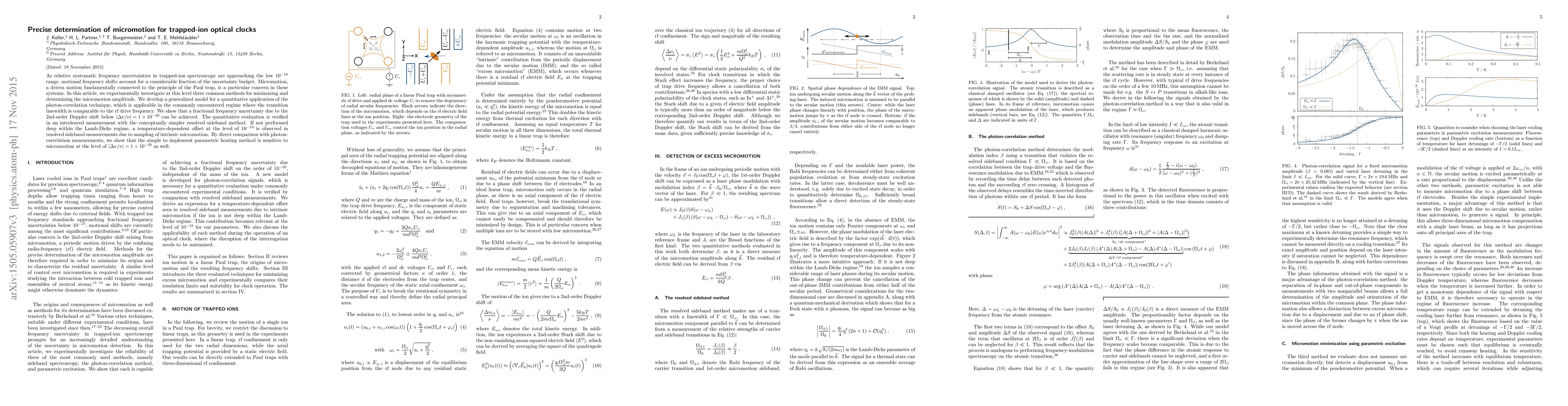 As relative systematic frequency uncertainties in trapped-ion spectroscopy are approaching the low $10^{-18}$ range, motional frequency shifts account for a considerable fraction of the uncertainty budget. Micromotion, a driven motion fundamentally connected to the principle of the Paul trap, is a particular concern in these systems. In this article, we experimentally investigate at this level three common methods for minimizing and determining the micromotion amplitude. We develop a generalized model for a quantitative application of the photon-correlation technique, which is applicable in the commonly encountered regime where the transition linewidth is comparable to the rf drive frequency. We show that a fractional frequency uncertainty due to the 2nd-order Doppler shift below $1\times 10^{-20}$ can be achieved. The quantitative evaluation is verified in an interleaved measurement with the conceptually simpler resolved sideband method. If not performed deep within the Lamb-Dicke regime, a temperature-dependent offset at the level of $10^{-19}$ is observed in resolved sideband measurements due to sampling of intrinsic micromotion. By direct comparison with photon-correlation measurements, we show that the simple to implement parametric heating method is sensitive to micromotion at the level of $1\times 10^{-20}$ as well.