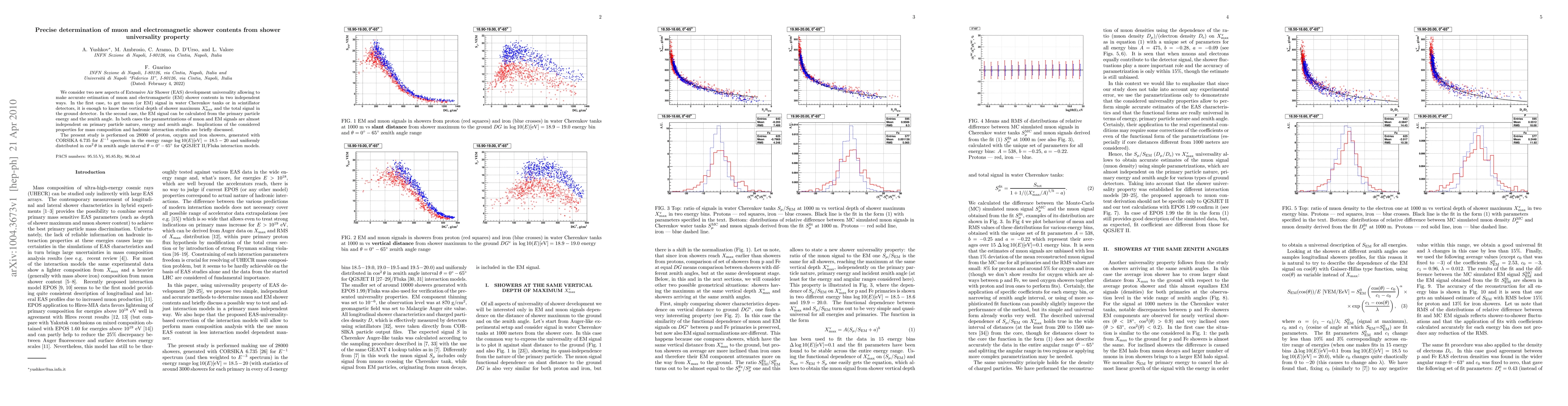 This paper presents two methods for accurately estimating muon and electromagnetic shower contents using shower universality properties. The methods rely on the vertical depth of shower maximum and ground detector signals, or primary particle energy and zenith angle, with minimal dependence on the primary particle type, energy, or angle. The study's implications for mass composition and hadronic interaction research are briefly discussed.