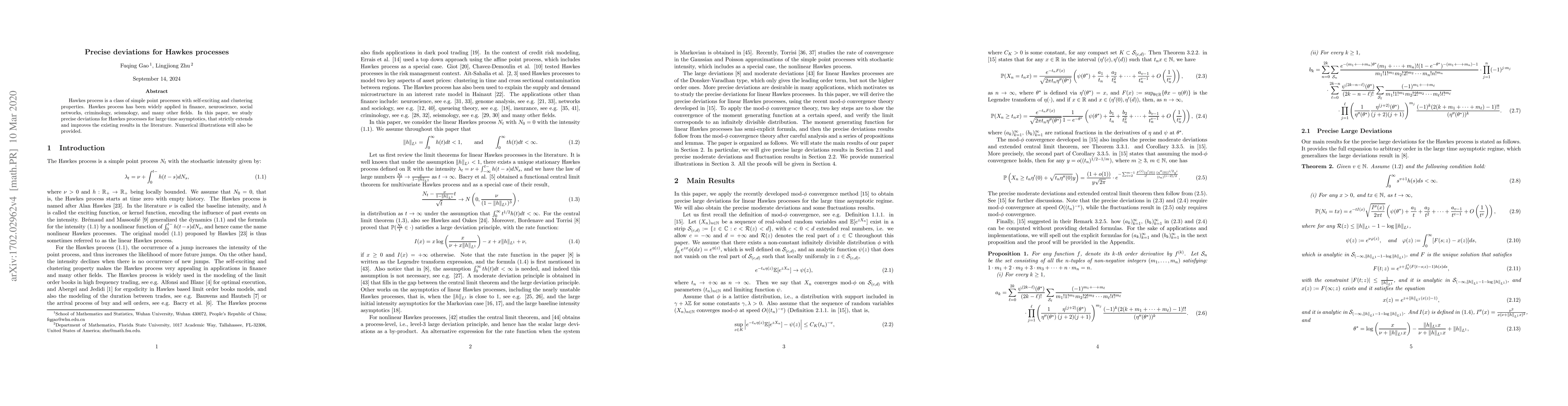 This paper investigates precise deviations for Hawkes processes in large time asymptotics, extending and improving existing results. Numerical illustrations are provided to demonstrate the findings.