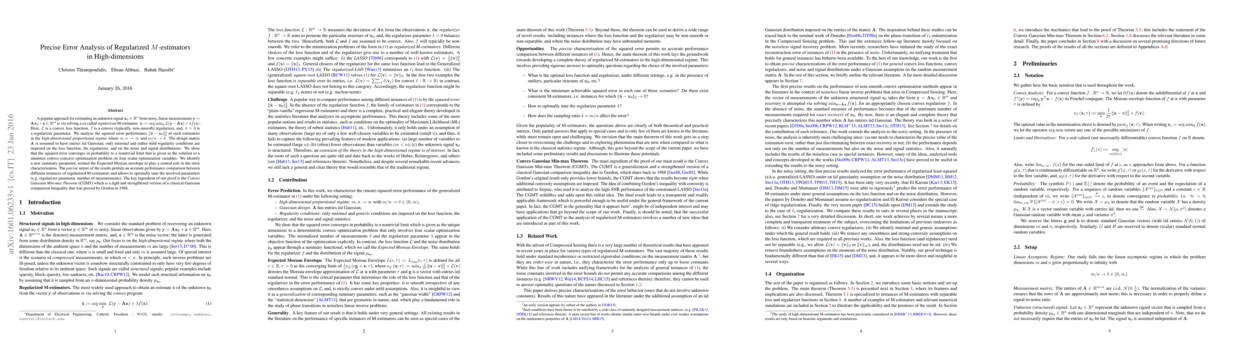 This paper provides a precise error analysis for regularized M-estimators in high-dimensional settings, showing that their error converges to a limit determined by a minimax optimization problem. The analysis leverages the Convex Gaussian Min-max Theorem to accurately characterize performance and optimally tune parameters.