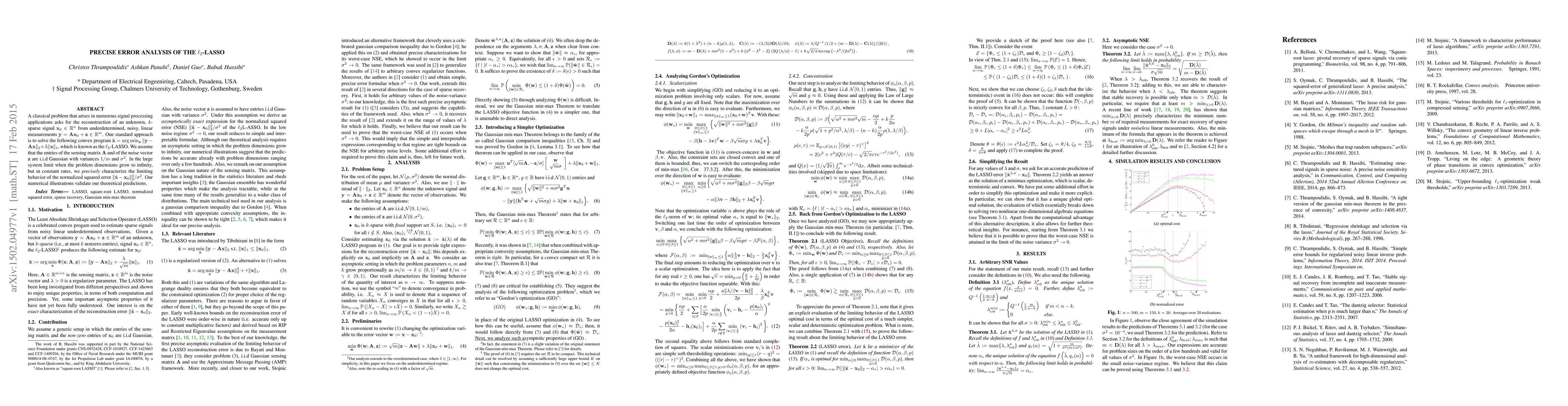 A classical problem that arises in numerous signal processing applications asks for the reconstruction of an unknown, $k$-sparse signal $x_0\in R^n$ from underdetermined, noisy, linear measurements $y=Ax_0+z\in R^m$. One standard approach is to solve the following convex program $\hat x=\arg\min_x \|y-Ax\|_2 + \lambda \|x\|_1$, which is known as the $\ell_2$-LASSO. We assume that the entries of the sensing matrix $A$ and of the noise vector $z$ are i.i.d Gaussian with variances $1/m$ and $\sigma^2$. In the large system limit when the problem dimensions grow to infinity, but in constant rates, we \emph{precisely} characterize the limiting behavior of the normalized squared-error $\|\hat x-x_0\|^2_2/\sigma^2$. Our numerical illustrations validate our theoretical predictions.