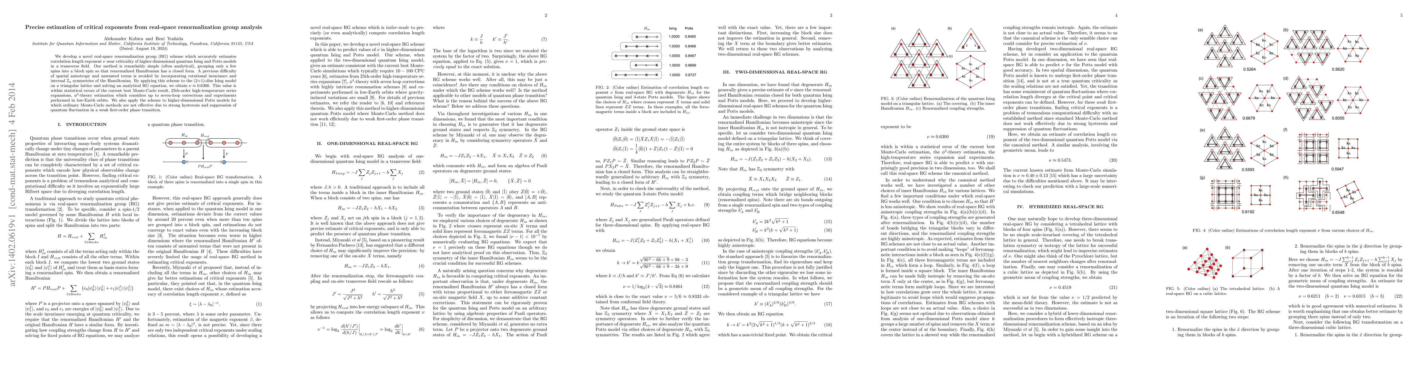 We develop a novel real-space renormalization group (RG) scheme which accurately estimates correlation length exponent $\nu$ near criticality of higher-dimensional quantum Ising and Potts models in a transverse field. Our method is remarkably simple (often analytical), grouping only a few spins into a block spin so that renormalized Hamiltonian has a closed form. A previous difficulty of spatial anisotropy and unwanted terms is avoided by incorporating rotational invariance and internal $\mathbb{Z}_q$ symmetries of the Hamiltonian. By applying this scheme to the (2+1)-dim Ising model on a triangular lattice and solving an analytical RG equation, we obtain $\nu\approx 0.6300$. This value is within statistical errors of the current best Monte-Carlo result, 25th-order high-temperature series expansions, $\phi^4$-theory estimation which considers up to seven-loop corrections and experiments performed in low-Earth orbits. We also apply the scheme to higher-dimensional Potts models for which ordinary Monte-Carlo methods are not effective due to strong hysteresis and suppression of quantum fluctuation in a weak first-order phase transition.