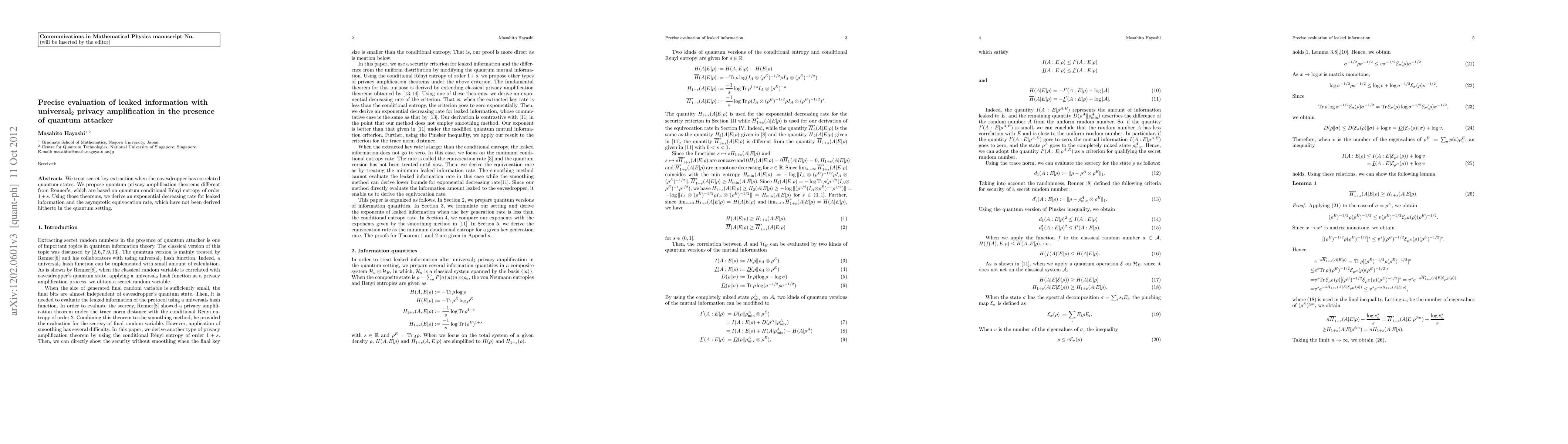 We treat secret key extraction when the eavesdropper has correlated quantum states. We propose quantum privacy amplification theorems different from Renner's, which are based on quantum conditional R\'{e}nyi entropy of order 1+s. Using those theorems, we derive an exponential decreasing rate for leaked information and the asymptotic equivocation rate, which have not been derived hitherto in the quantum setting.