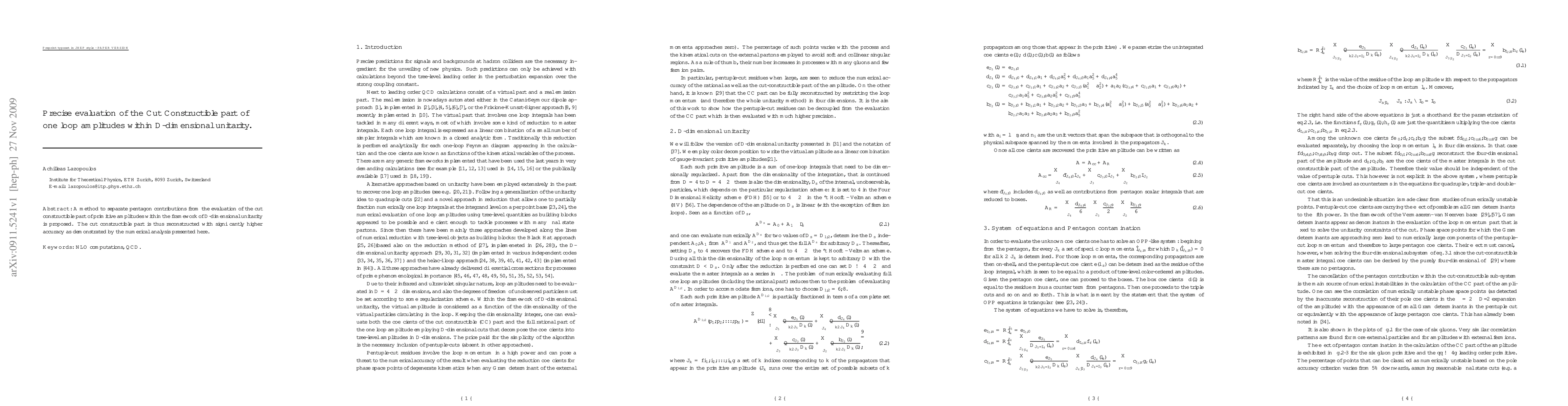 This paper presents a novel method to accurately separate pentagon contributions in evaluating the cut constructible part of one-loop amplitudes using D-dimensional unitarity. The proposed technique significantly improves the reconstruction accuracy, as demonstrated by the numerical analysis provided.