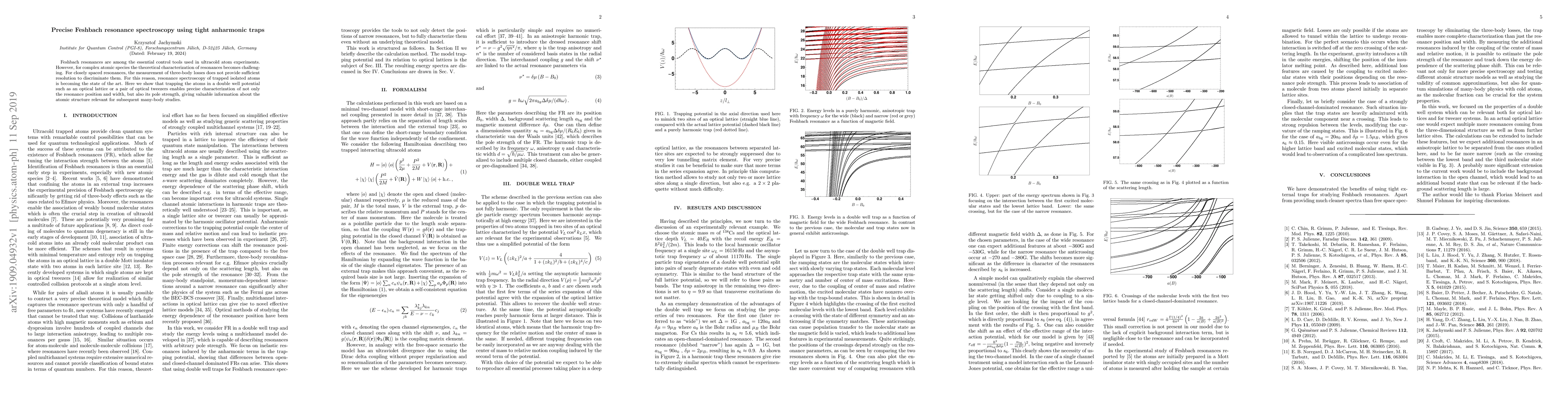 This paper demonstrates precise Feshbach resonance spectroscopy using tight anharmonic traps, specifically double well potentials, to accurately characterize resonance positions, widths, and pole strengths for complex atomic species, providing crucial insights for many-body studies.