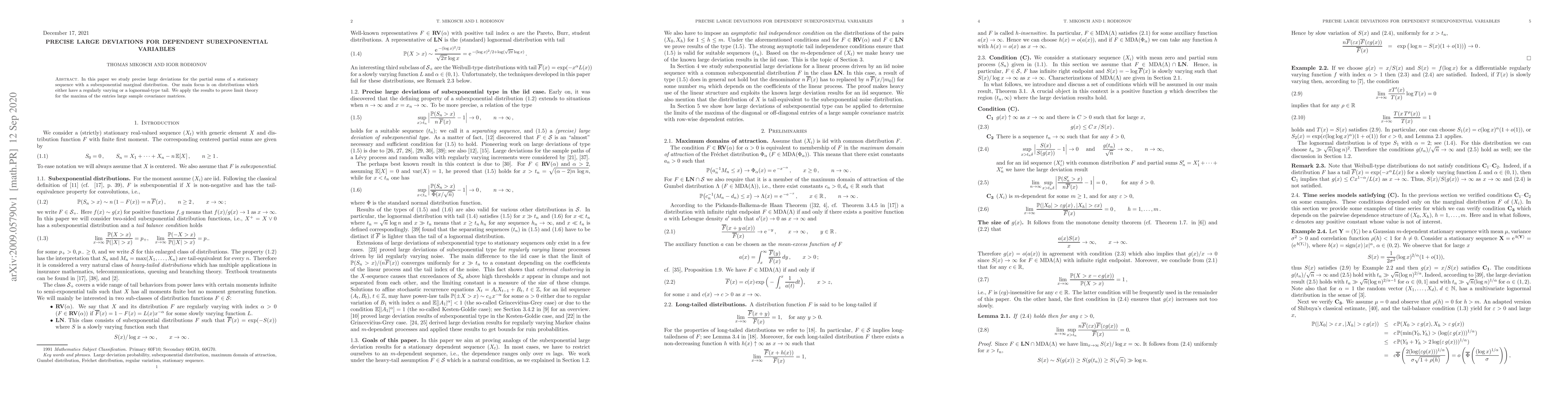 This paper investigates precise large deviations for partial sums of a stationary sequence of subexponential variables with regularly varying or lognormal-type tails, and applies these results to establish limit theory for maxima in large sample covariance matrices.