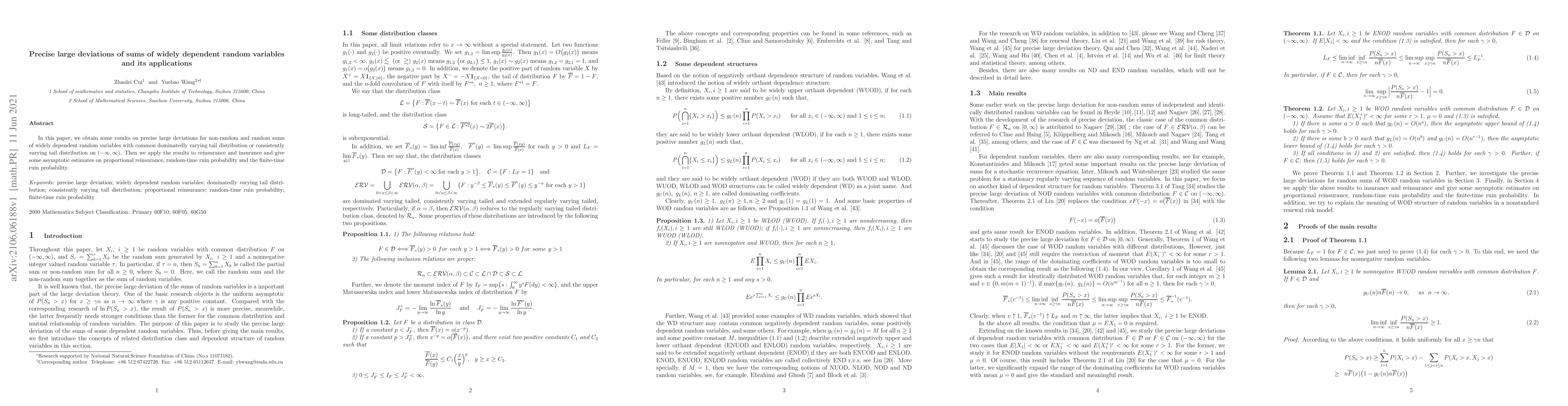 This paper presents precise large deviation results for sums of widely dependent random variables with specific tail distributions, and applies these results to reinsurance and insurance, providing asymptotic estimates for proportional reinsurance, random-time, and finite-time ruin probabilities.